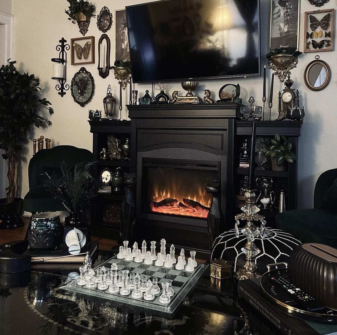 リビングルームは現在進行中ですが、日光が当たらないので夜が一番居心地が良いです。