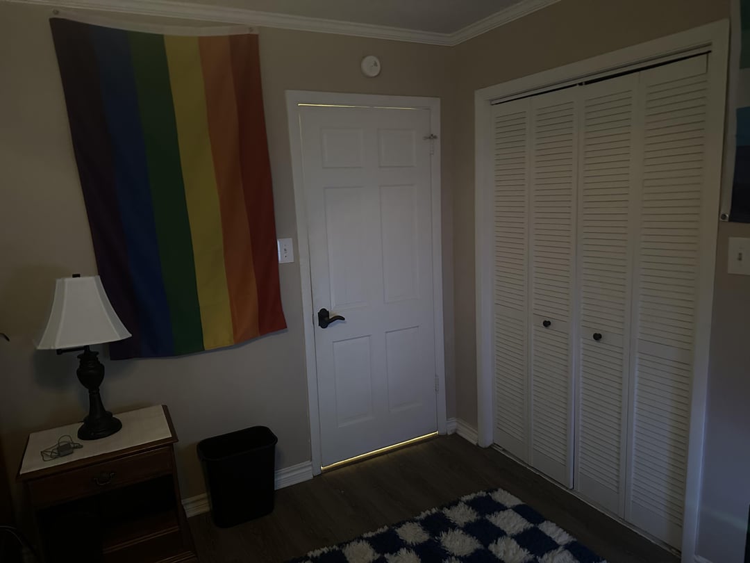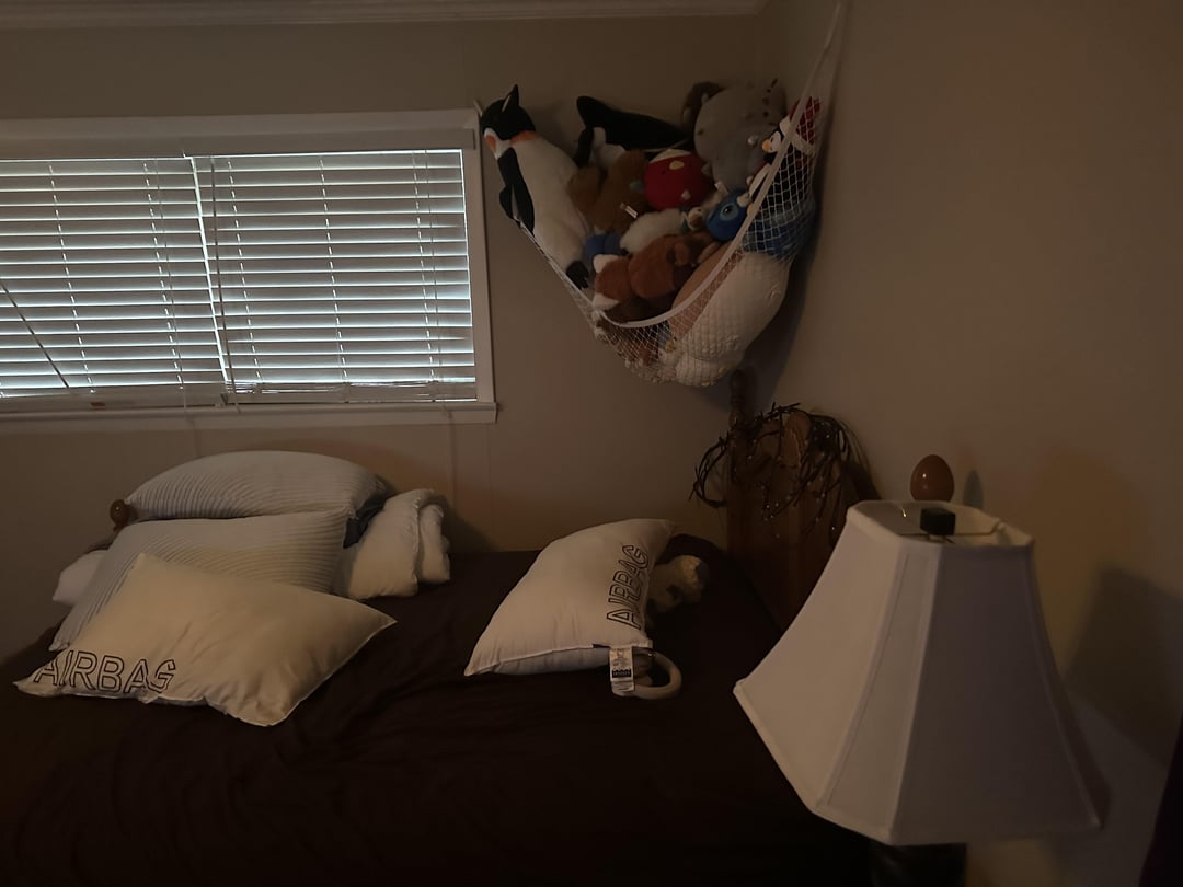 また、私の敷物がその恐ろしい位置にある理由は、私がそれを掃除機で掃除していて、そのように掃除機をかけるのが簡単だったからです。通常、ベッドと平行にするために回すので、それがあります。