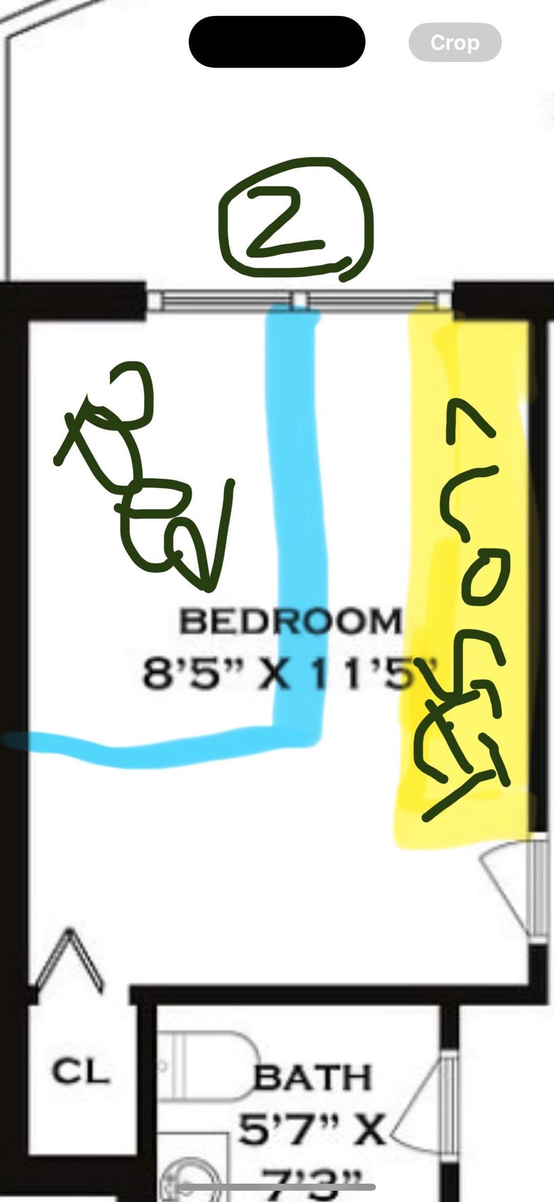 私はフルサイズのベッドとたくさんの服を持っているので、この寝室に床から天井までのクローゼットを追加する必要があります。 Ikea Paxシステムを使用することを考えています。小さな内蔵クローゼットにアクセスするために、カットアウトが側面にあります。