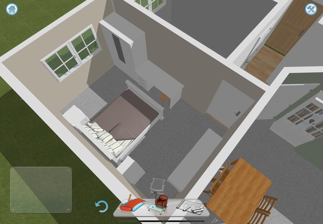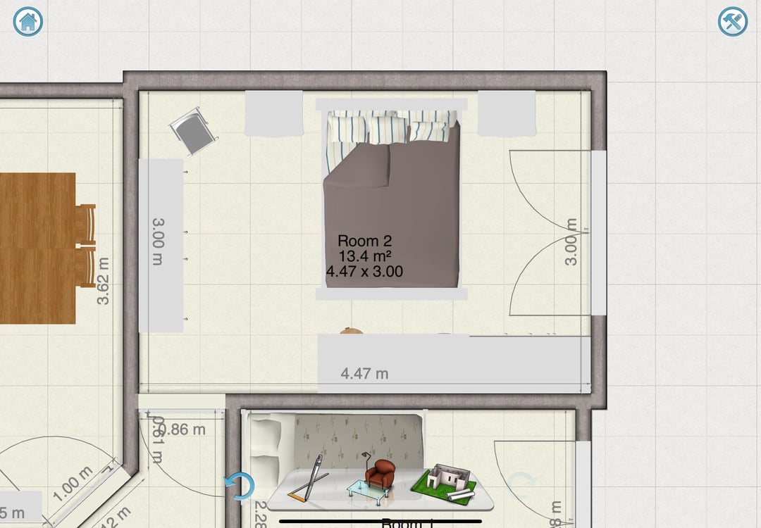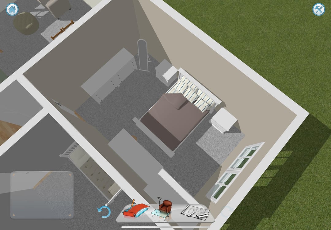 私のパートナーと私は一緒に私たちの最初の場所に引っ越しており、私たちの寝室のレイアウトを助けたいです!フロアプランと家具をご覧ください。この現在の配置は、私が考えることができる唯一の実行可能なレイアウトです!