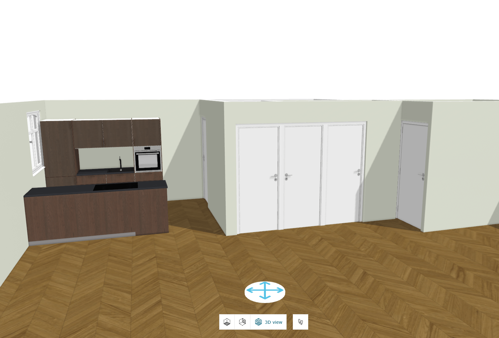 最初の2つ(左から右)は2つのクローゼットで、3番目(右端)は地下に通じるドアです。私はそれがどのように見えるかのファンではありません。クローゼットを削除することは、残念ながら選択肢ではありません。