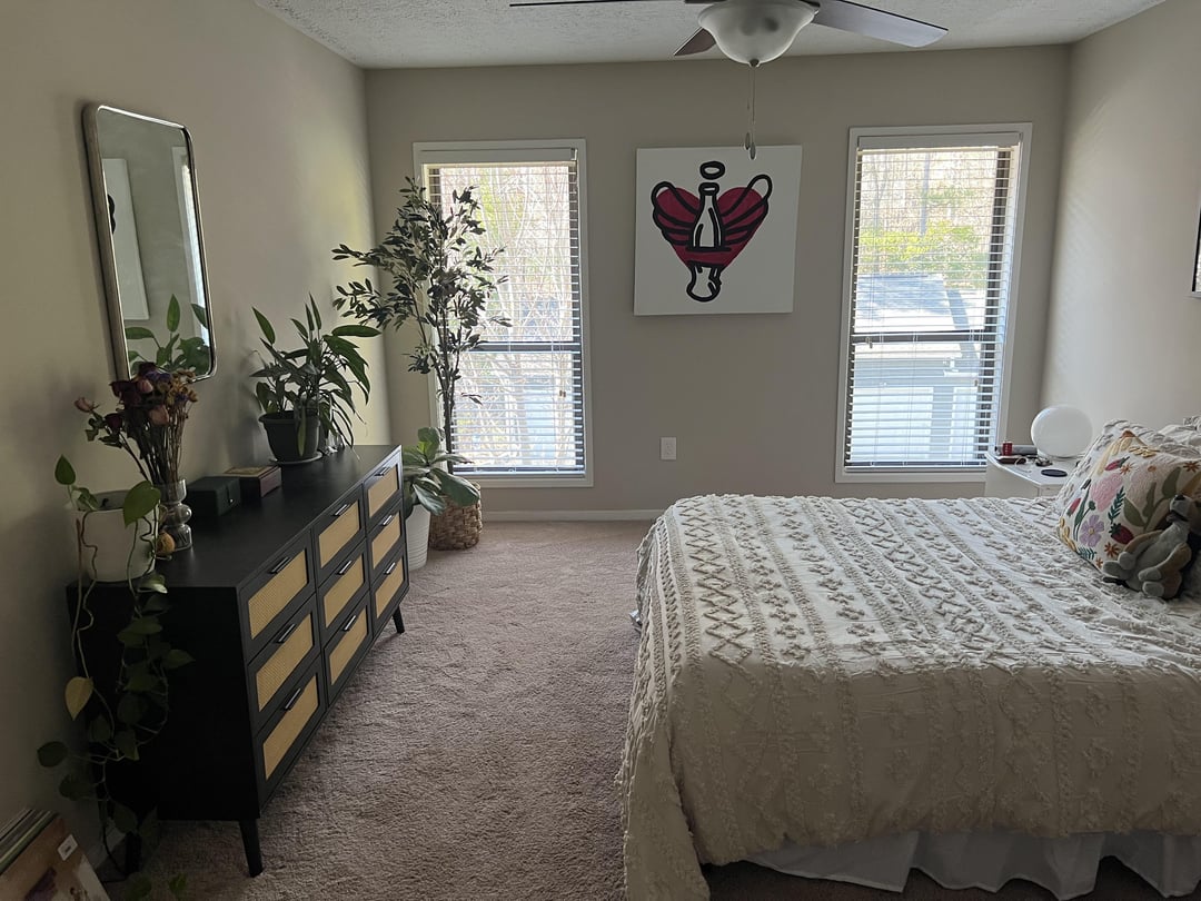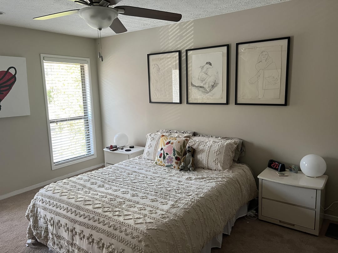 こんにちは!!私のパートナーと私はしばらく一緒に暮らしてきました、そして私たちの寝室は私たちの家の最も少ないまとまりのある部分です。家具は不一致で、家で私の一番好きなスペースです。壁には家族のアートワークがありますが、完全な再設計をしたいと思います。私は大好きなインスポの写真をいくつか含めました。私は中世とカラフルな部屋が大好きですが、スペースが大きくないのでどこから始めればよいかさえわかりません。レンタルなのでファンやカーペットを交換することはできません。どんな考えやアドバイスは大歓迎されます
