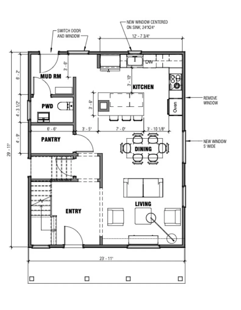 キッチンダイニングルームとリビングルームのレイアウトについてどう思いますか? amp屈だと感じますか?あなたが考えることができるより良いレイアウトはありますか?リビングルームとダイニングルームはぴったりと感じており、テレビに最適な場所はないようです。まったく異なるレイアウトを開いています。