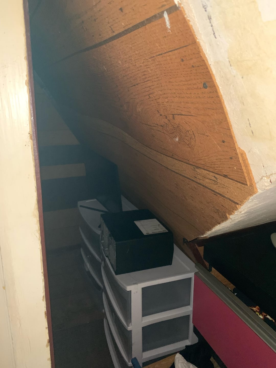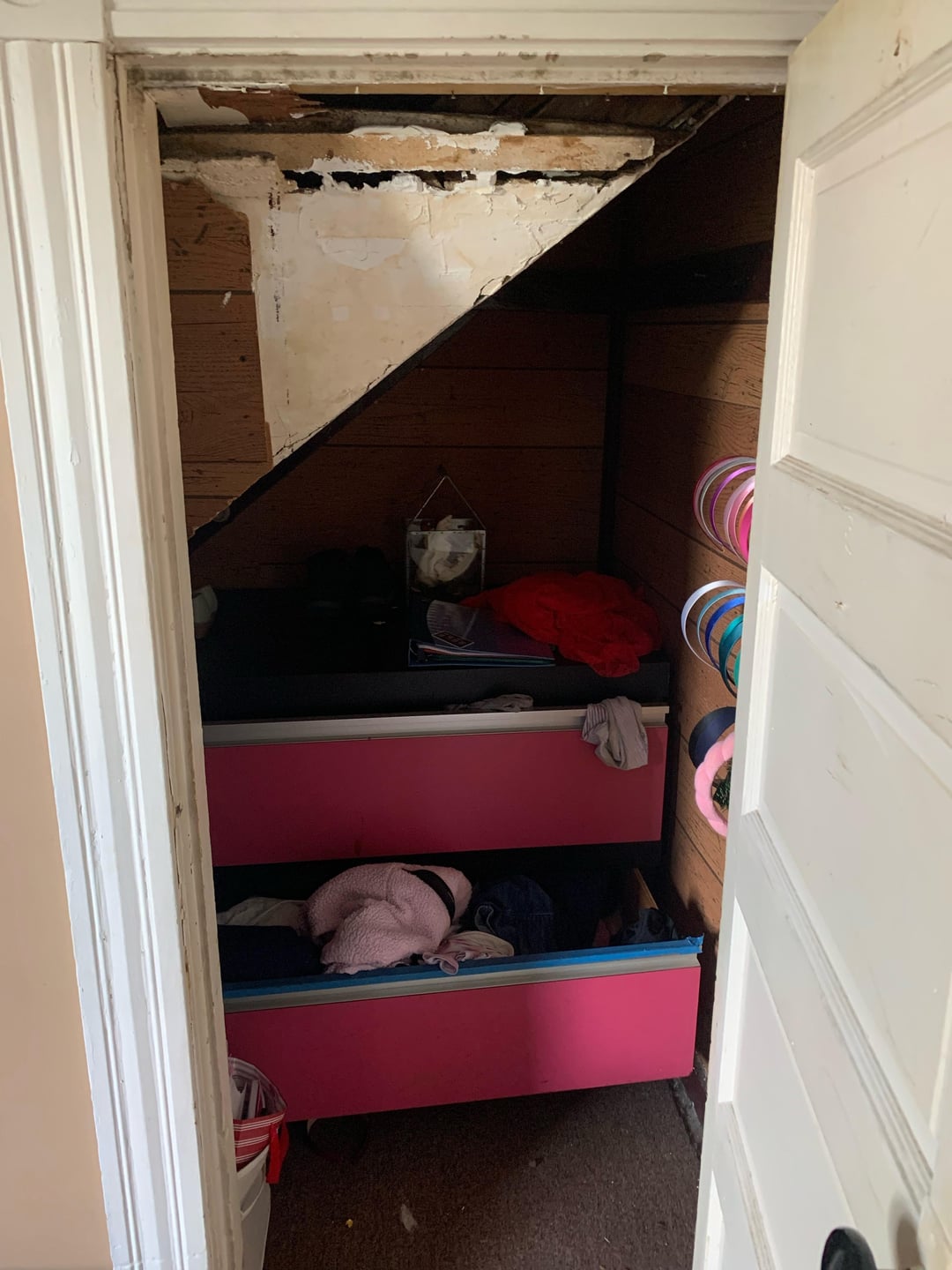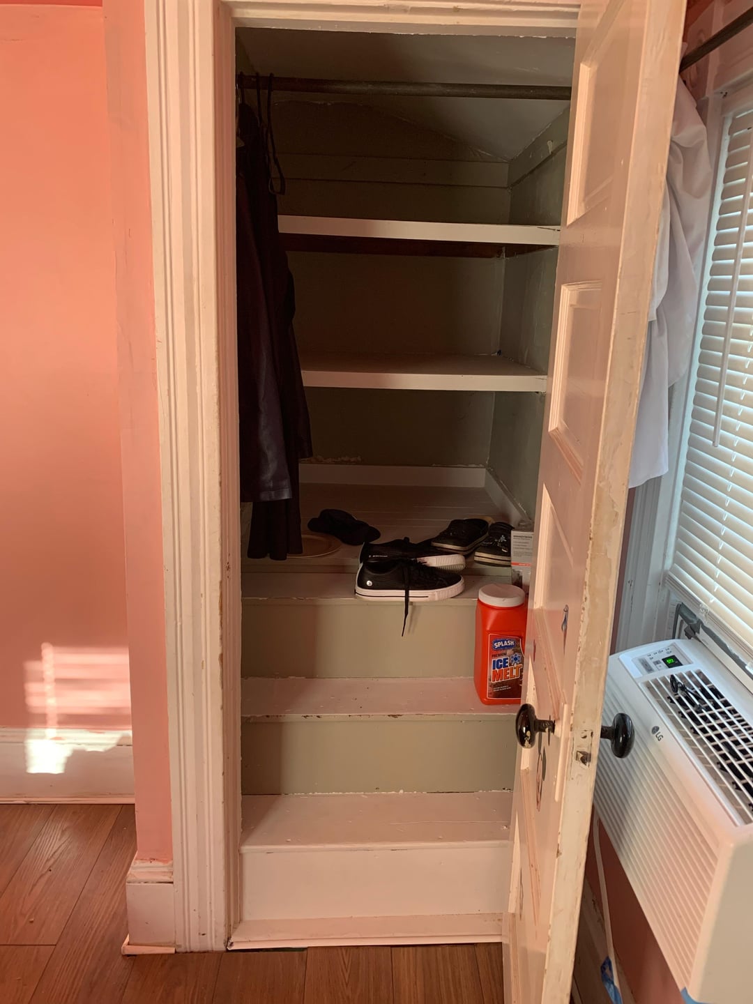どうぞ、助けてください。私は私の家が大好きですが、それはかなり古く、私たちはゆっくりと改修しています。しかし、これらの3つのクローゼットは私の存在の無駄です。 1つ目は私の寝室にあります(ピンクを塗りつぶします)、2つ目は私のオフィスに、3つ目は私のボーイフレンドのスタジオ/マンの洞窟にあります。私たちはすべての服にぴったりのクローゼットの中を散歩しているので、実際の服を保管する必要はありません。だから、何かアイデアはありますか?