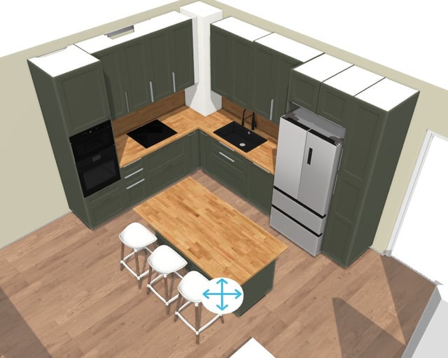 みなさん、 ここに来て、最初のアパートのために思いついたキッチンのレイアウトに関する批評を探していました。それは巨大なキッチンではありませんが、料理が大好きなので、料理のためのスペースが必要です。これは私がこれまでに思いついたものなので、私よりも経験を持つ人々からのアドバイスを探しています(その経験は私の場合は0です)。 (白いものはソファであるはずです、それはおそらくそれよりも小さくなるでしょう)。