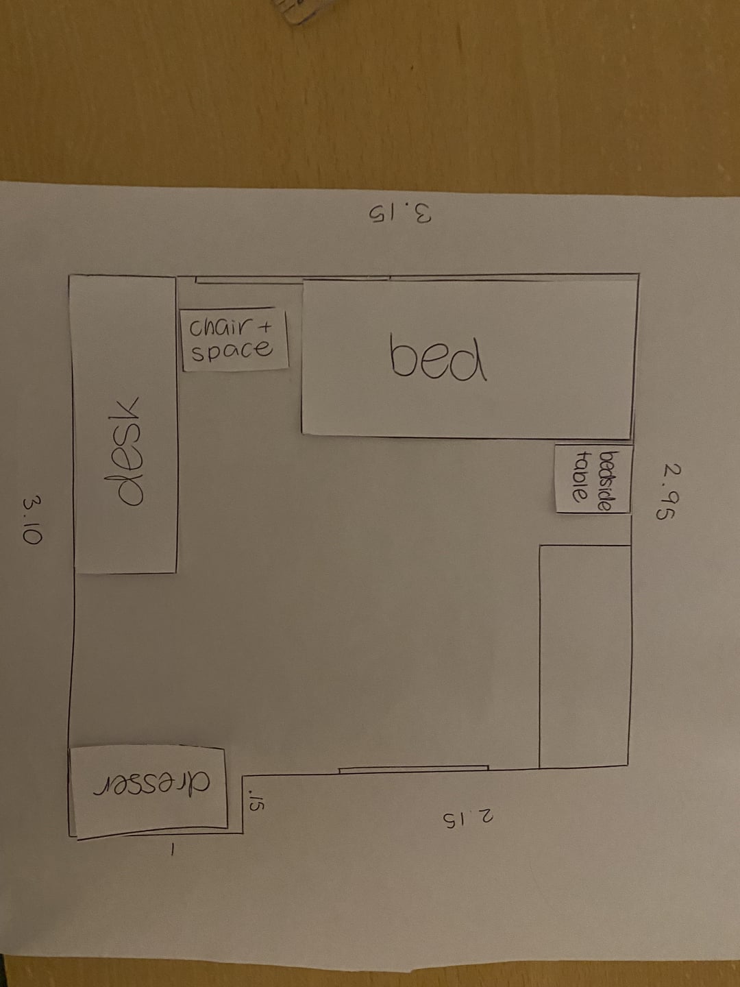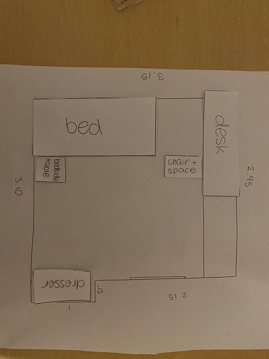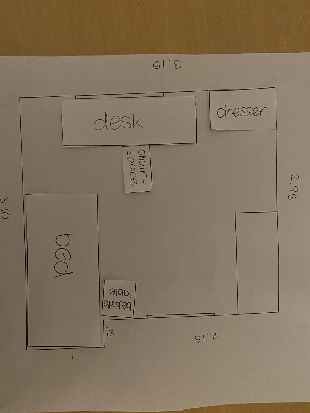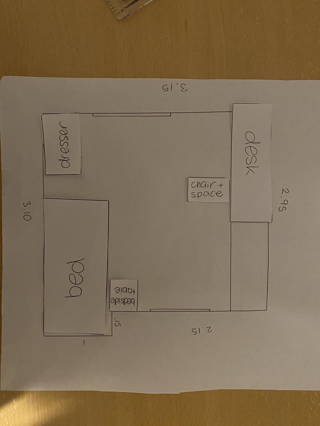 風水や一般的な厄介なレイアウトを台無しにすることなく、部屋のスペースを最大化しようとしています。 (窓から)私の机により多くの光が必要で、ベッドへの光が少なくなります。レイアウトの描画は5 cmに正確であるため、可能なレイアウトを見逃した場合、または最適なレイアウトを見逃した場合はLMKです。