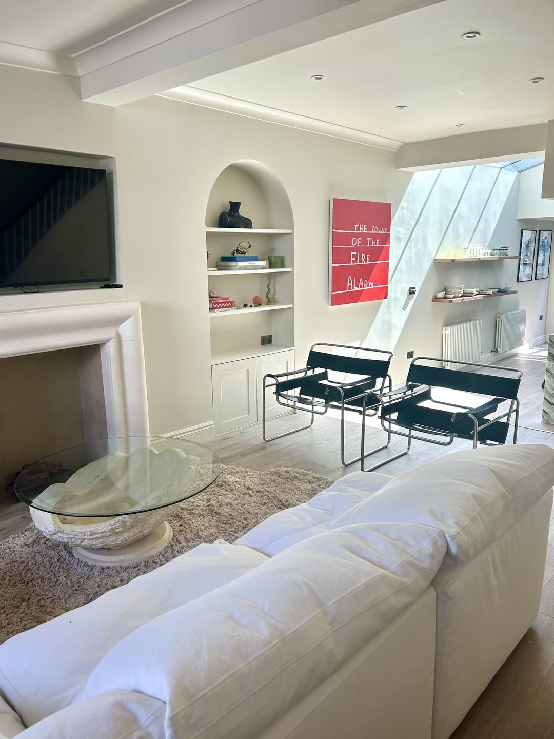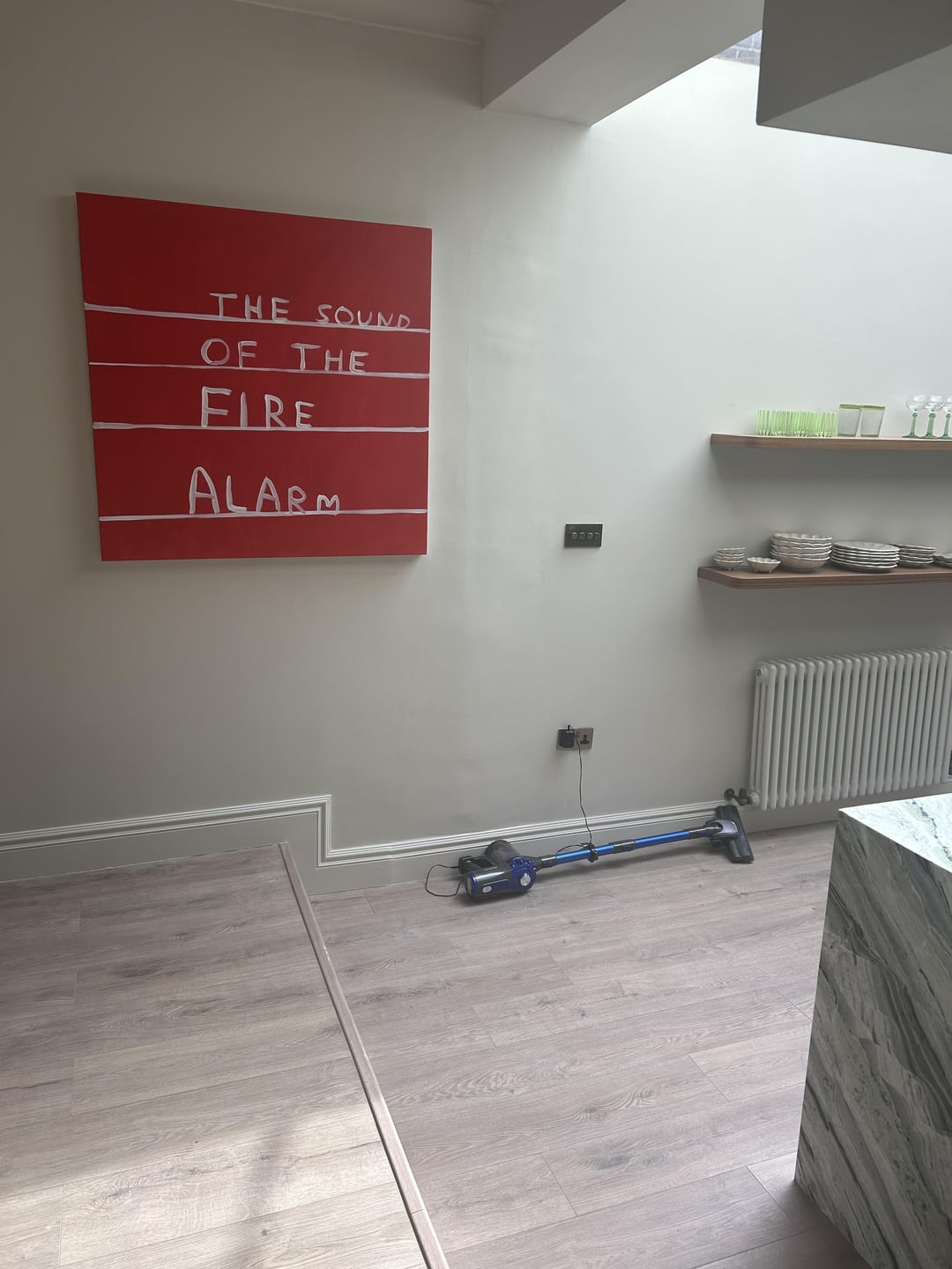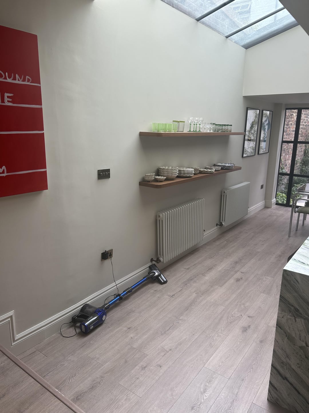 私のオープンプランキッチンの写真にフーバーがあるこの1.6mのデッドスペースを埋める方法のアイデアを探しています。リビングルームのエリアは左側にあり、キッチンスペースに足を踏み入れており、リビングルームのバランスがとれていると感じ、この小さなデッドスペースは私を悩ませます。