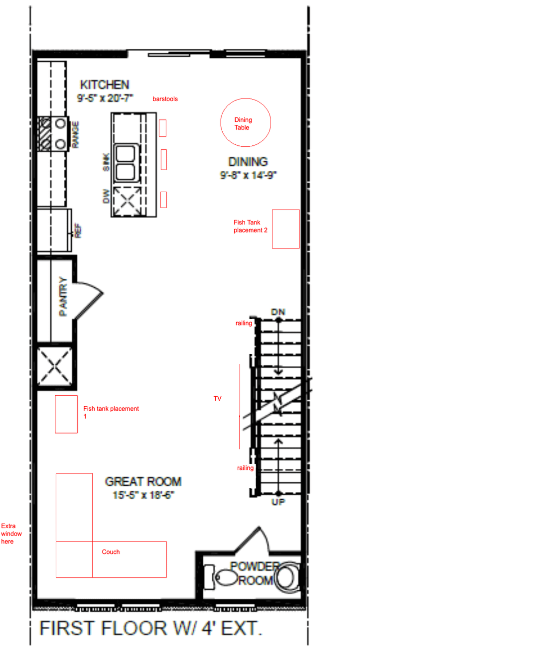 中央の領域を開いたままにしておくつもりです。 Xはユーティリティスポットであり、その壁には空気吸気 /セキュリティパネル /テムスタットがあります。配置1の場合、どのような角度ですか?