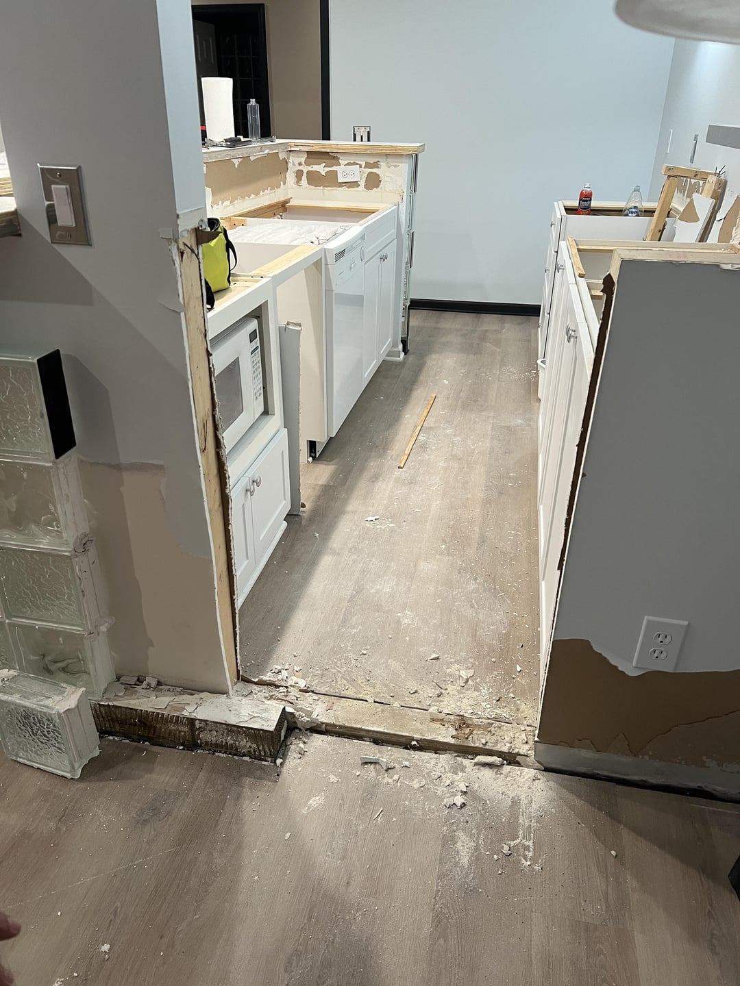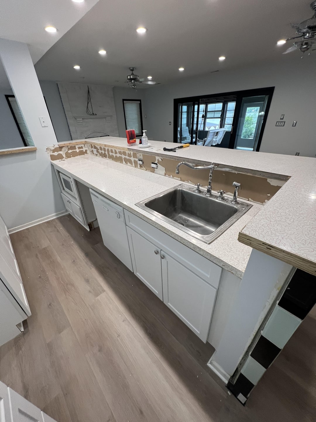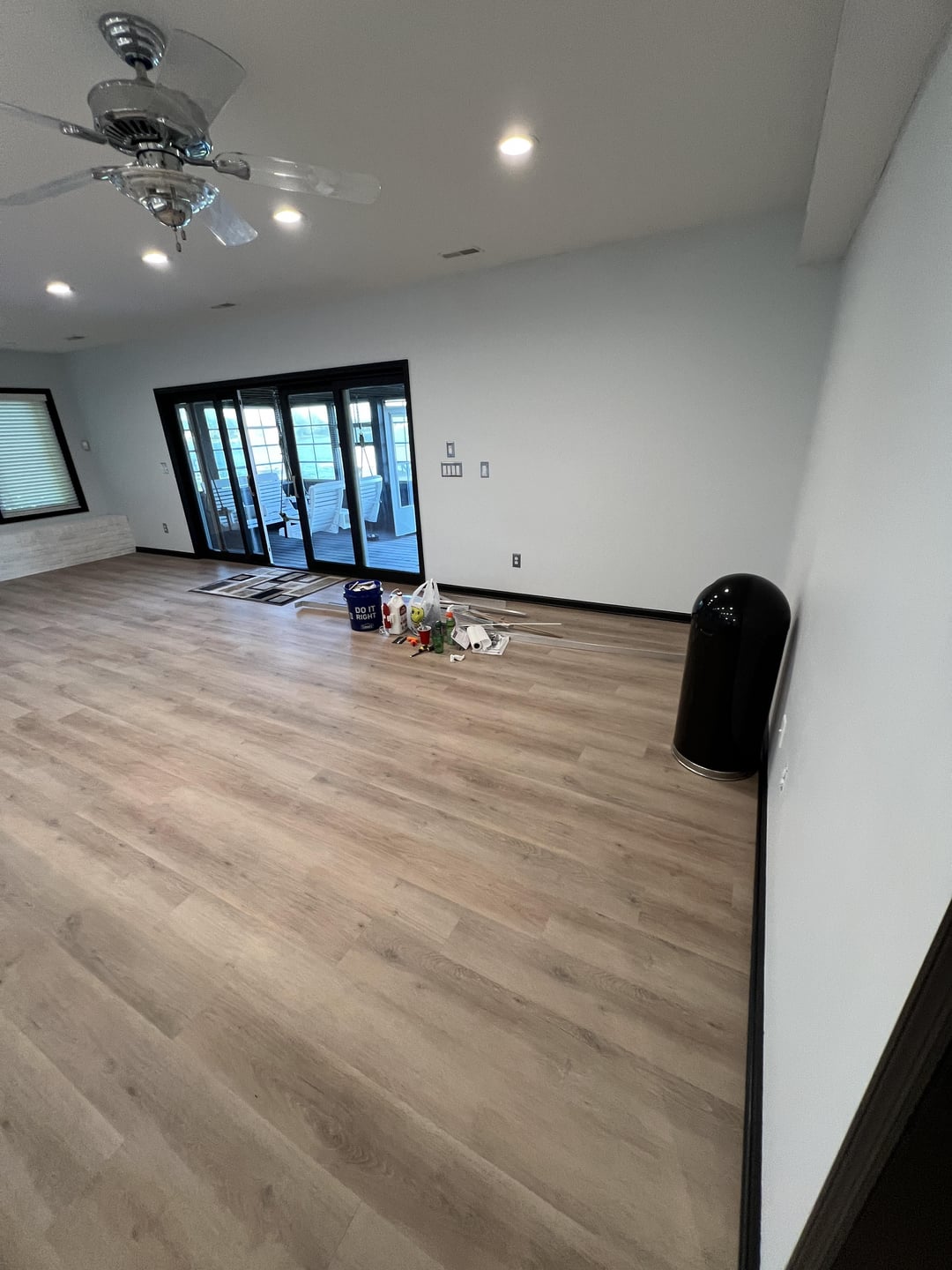 湖の家の1階の部屋で作業していて、インスピレーションを使うことができます!スペースはほとんど空白のキャンバスであり、バー/キッチンエリアだけ(現在はやり直されています)に加えて、実際にはどこにも収まらないように見えるソファとテレビがあります。