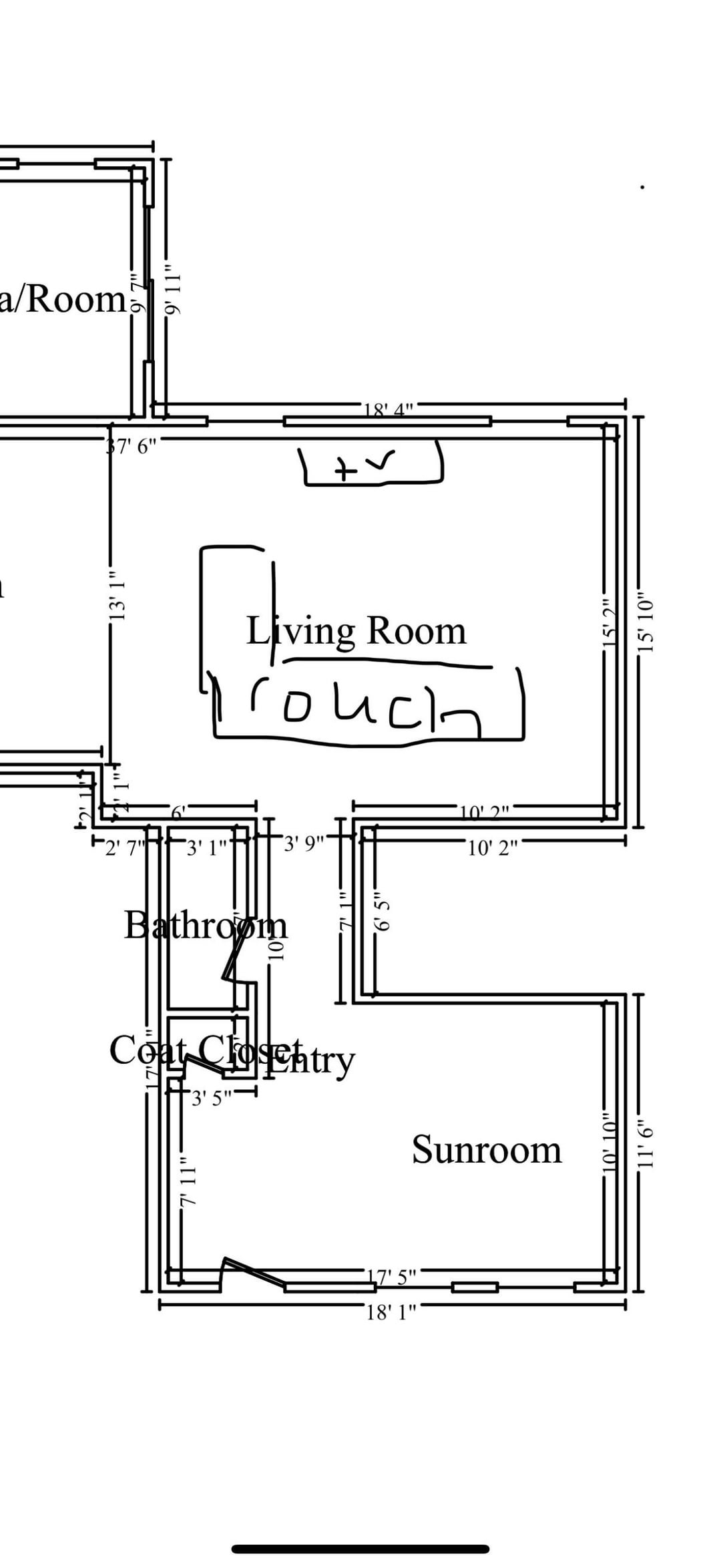 リビングルームのスペースを最大化するレイアウトを見つけたいと思っています。 3枚目の写真はレイアウトに関する私の考えであり、最後の写真は以前の所有者のレイアウトです。