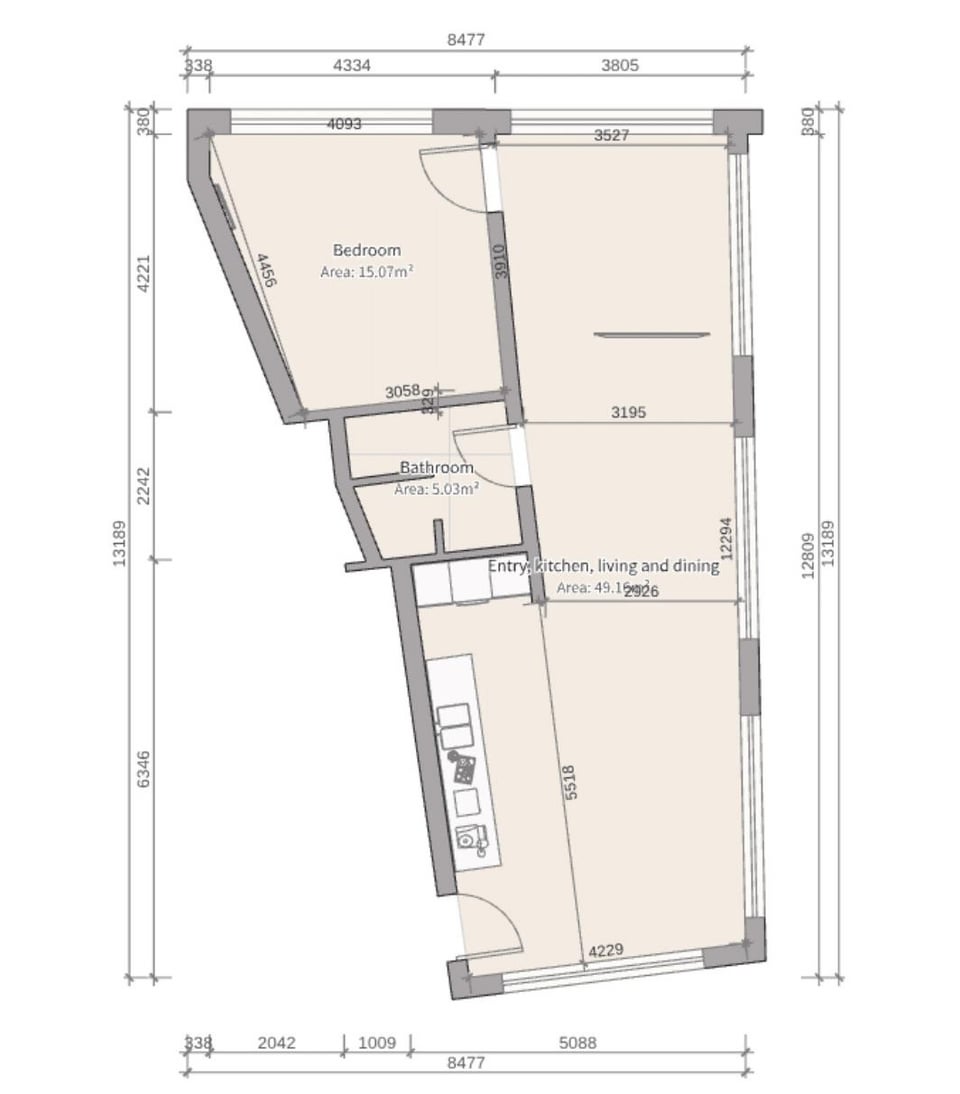 これは、アパートに配置する必要があるすべてのビットのリスト:ベッドルーム:1.65m。広いベッドワードローブメイク/ミラーステーション