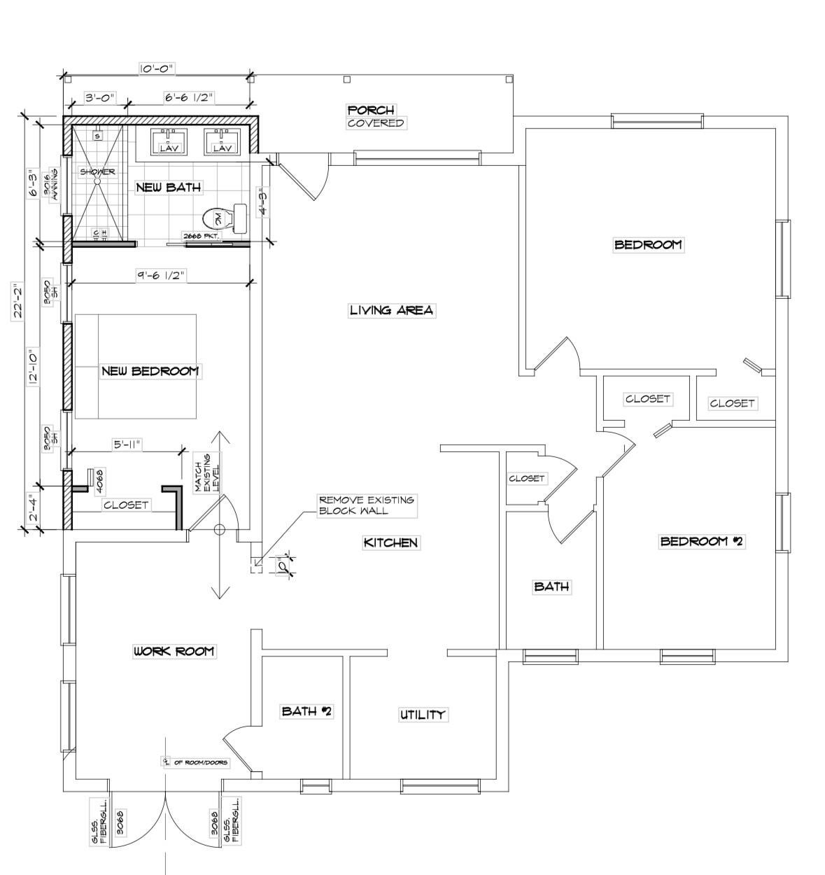 更新:マスターを追加しましたが、これまでにこれを行うことはありません。いくつかの変更を加えて(つまり、バスルームを少し押し出しました)、フランスのドアを追加しました。都市に提出する前に何か考え/アドバイスはありますか?