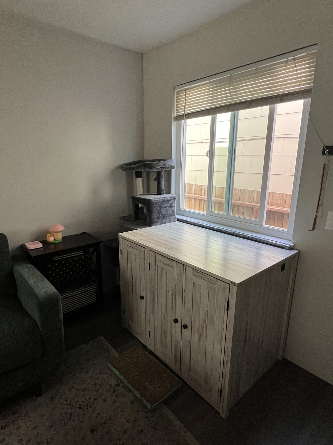 白いクレデンツァは私の猫のごみ箱がある場所にあるので、それはとどまる必要があります。私はそれを動かすことにオープンですが、猫はそこに座るのが大好きなので、窓の下で好みます。