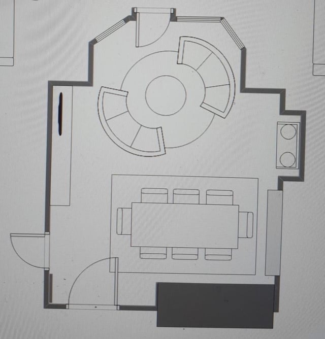 最後の画像は、これまでに見つかった最高の部屋のレイアウトであり、視聴場所にある2つの向きの円形のソファーに基づいています。これを改善できますか?