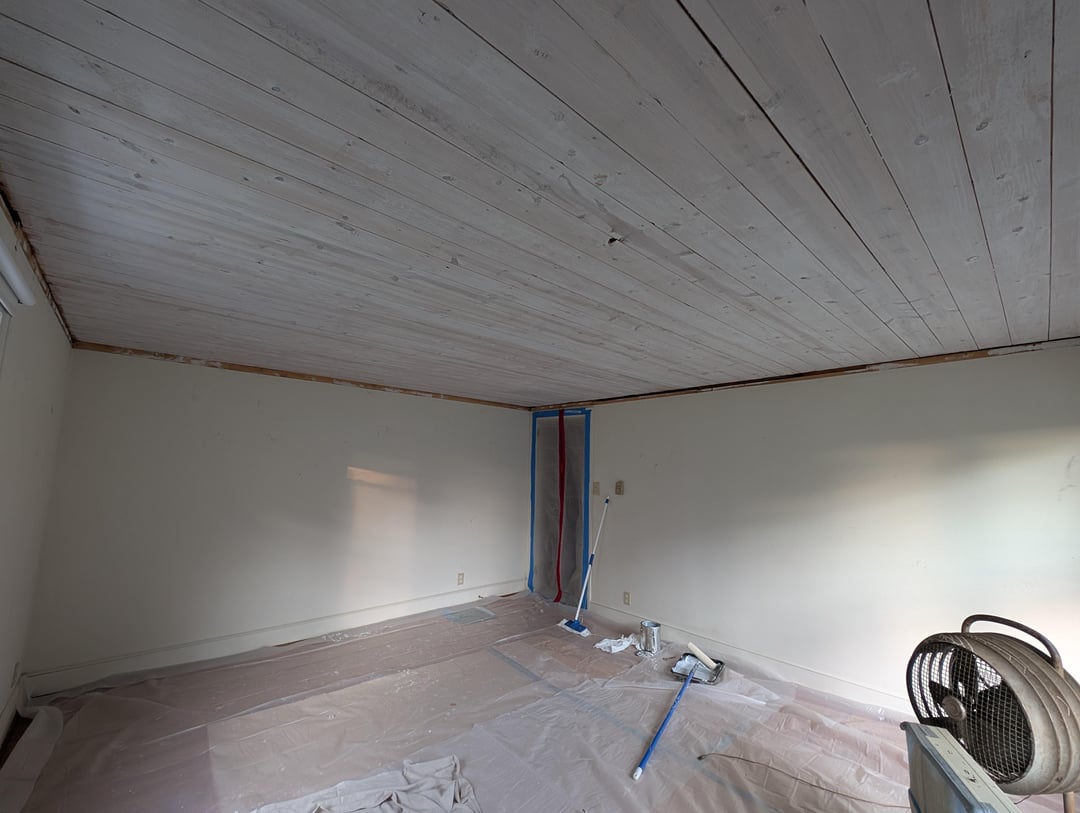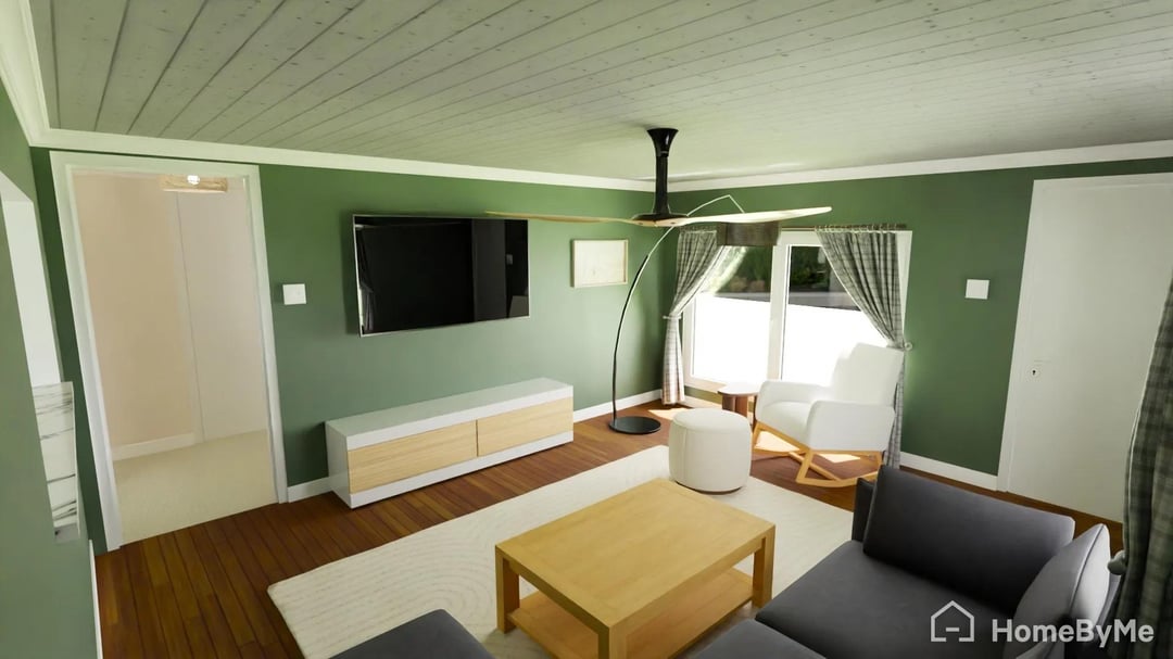 私のガールフレンドは、この天井には別のコートが必要だと思っていますが、私はそれの外観が好きです。これは堅木張りの床のあるリビングルームです。ビジョンを示すための最後のスライドとしてレンダリングします。