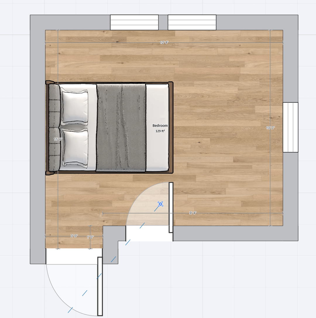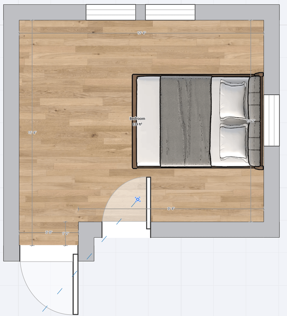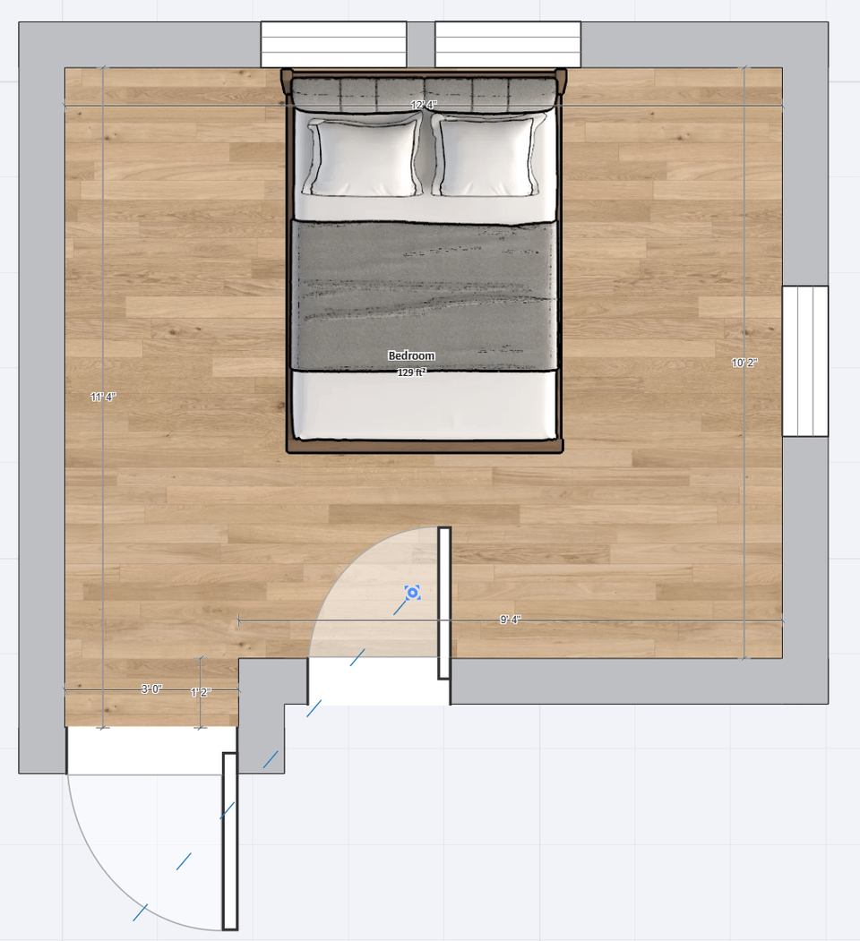 この部屋はかなり小さく、私はいつも窓をブロックしないのに苦労していました。クローゼットのドアが寝室に通じて、寝室のドアが廊下に通じています。