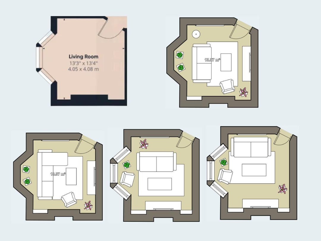 このリビングルームに最適なレイアウトを把握しようとしています。古い暖炉が削除され、ラジエーターを移動できます。ラジエーターが現在ある後ろの壁にソファを上げて、ドアを交換して他の方向を開くかどうかはわかりません。テレビは現在暖炉もある場所で最高になると思います。床の間のどちらかが十分に大きく、どちらも約80cmであるとは思いません。どんな推奨事項も素晴らしいでしょう!ありがとう!