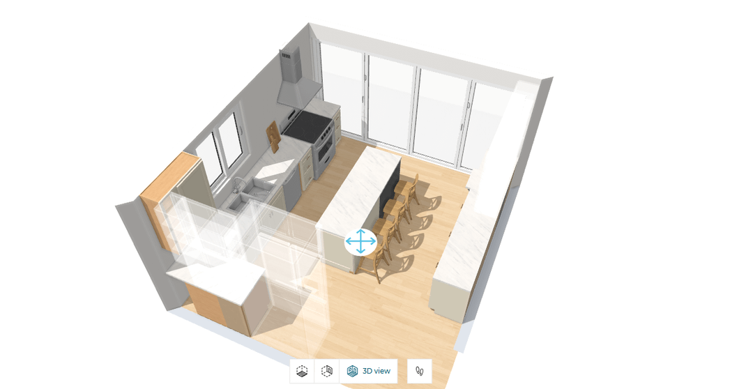 3. キッチンキャビネットとガラスのスライダーの端の間にどれだけのスペースが出るかはわかりません。