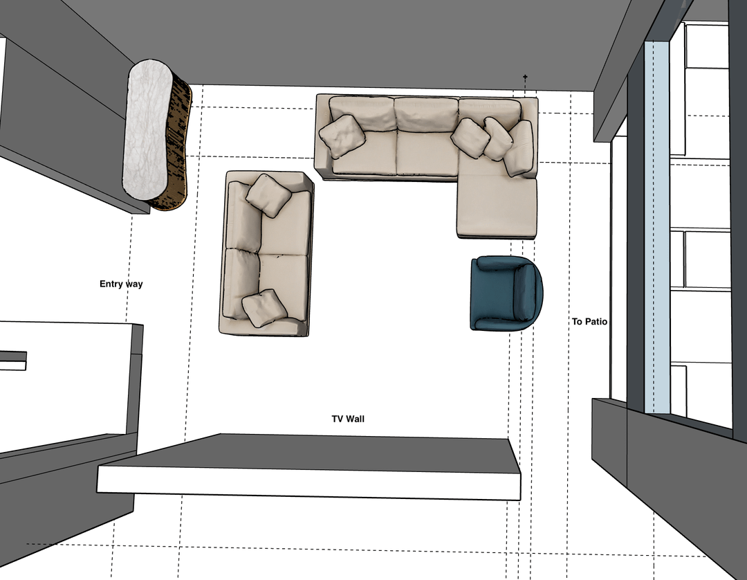 私は最近、Chaise Loungeを備えたソファを購入しましたが、バランスのとれたレイアウトを見つけるのに苦労しています。いくつかの異なるアレンジを試しましたが、どれも機能しないようです。 私が添付した2つのレイアウトに関するあなたのフィードバックと提案に大いに感謝します。私はあなたが持っているかもしれないどんなアイデアにもオープンです。