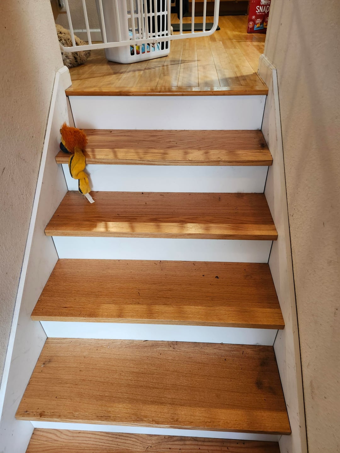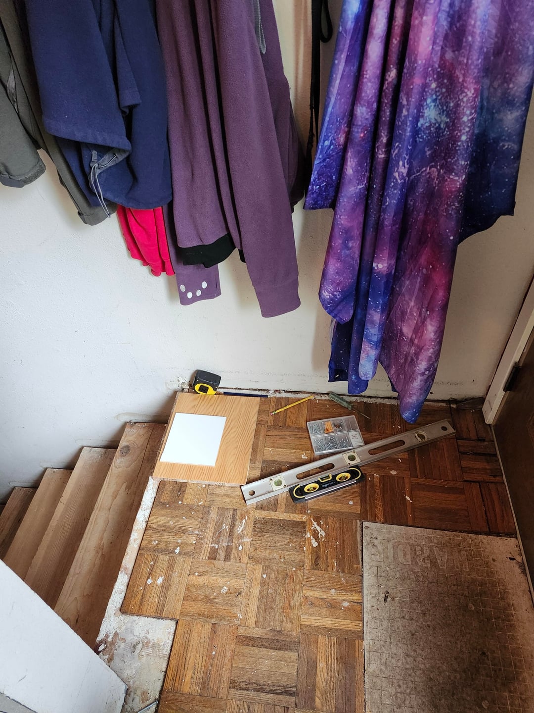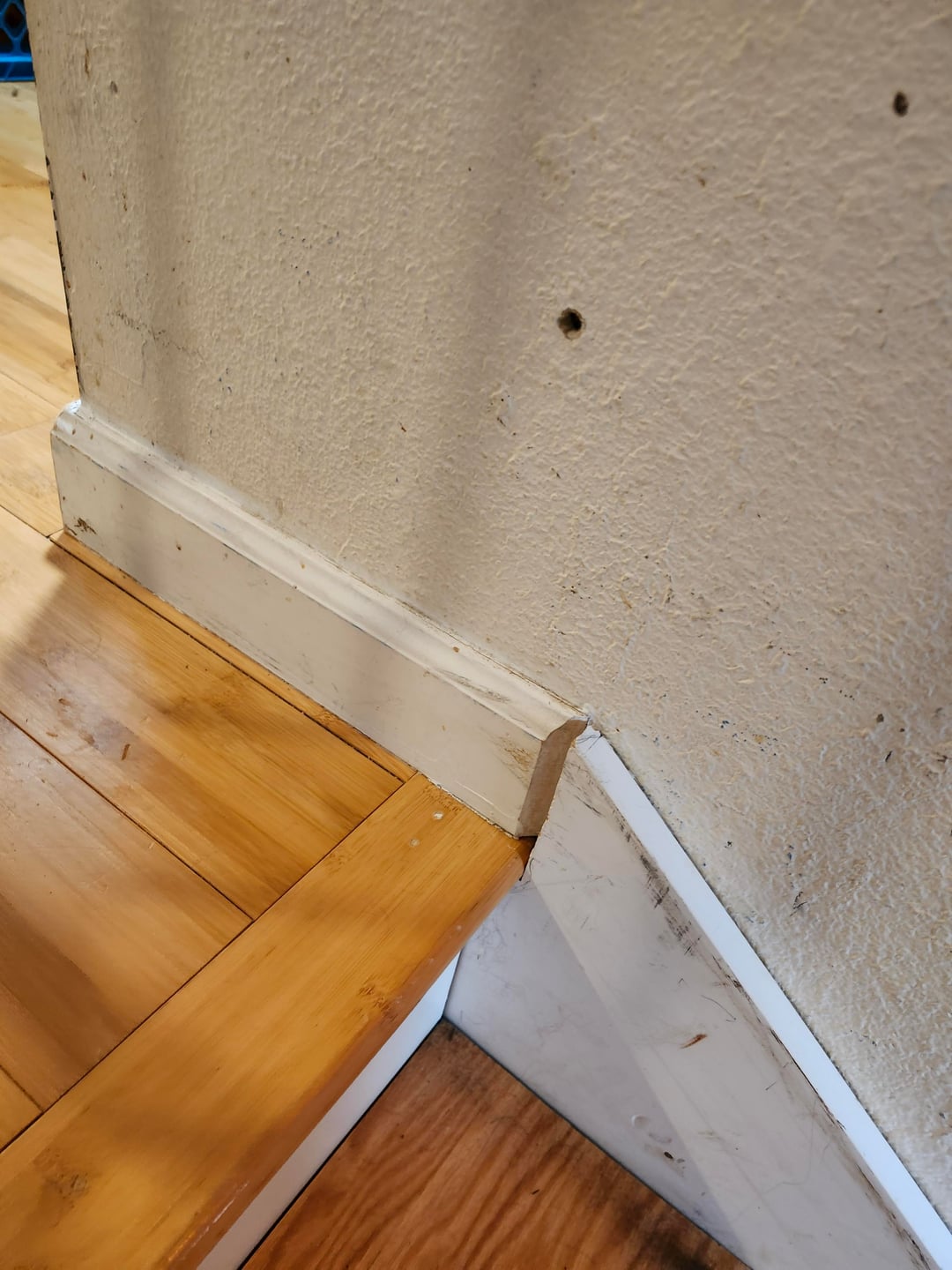 キンダはモールディングを台無しにしました。階段吹きの端で先細りし、異なる成形を使用しますか?着陸全体の背の高い成形はひどく見えます。上部の階段とモールディングはすでに(ごめんなさい)階段の上部に接着されています。私は同じですが、平らな側面と新鮮な短いモールディングを手に入れ、階段の成形の上部から一種のノッチを持っています(それが理にかなっていても、見栄えが良くなりますか?)私は迷子になって立ち往生していてひどいデザインスキルを持っています助けてください、私は何ヶ月もこのプロジェクトで冷凍されてきました