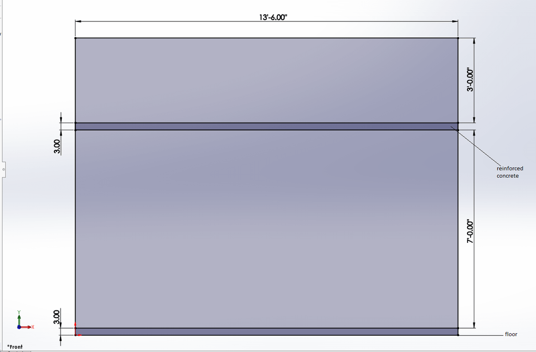 私は部屋の東の壁全体に沿ってワードローブ/アルミラを設計しています。壁はです 13.5フィート 長く、天井は 10.5フィート 高い。深さ2フィートの高さ7フィートの3インチのコンクリートスラブがあり、ベースも3インチ上昇します。 (画像3を参照)