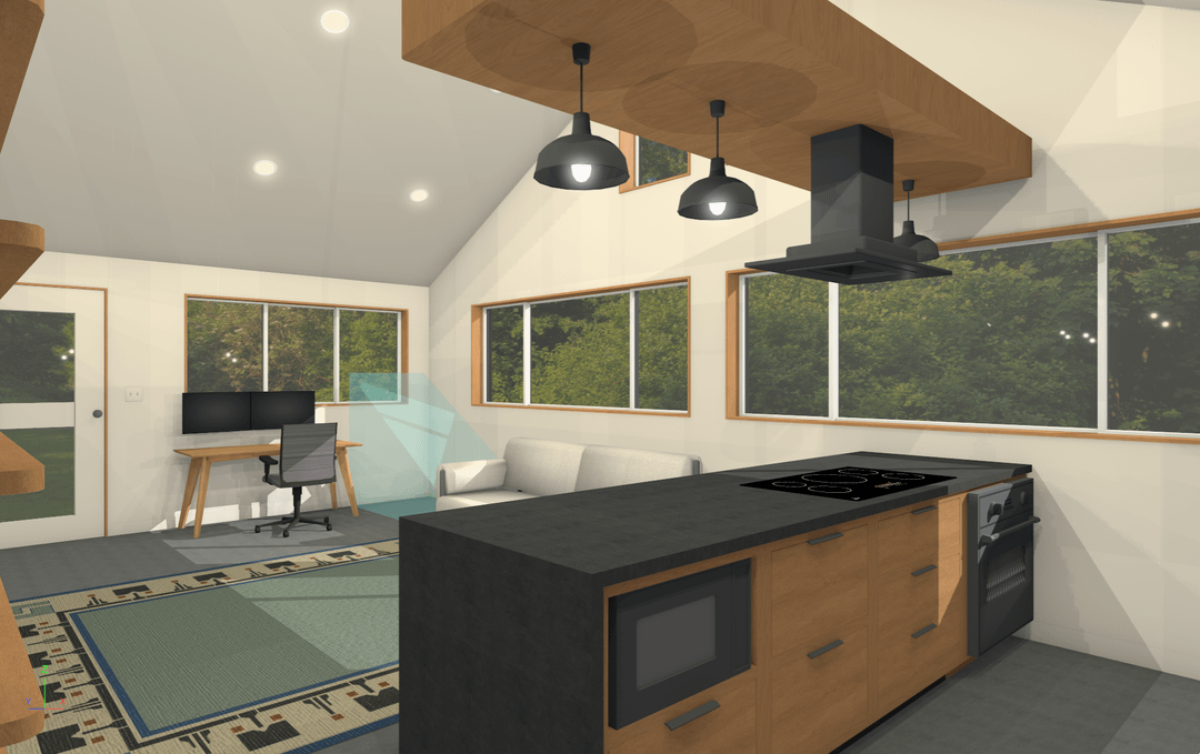 – すべての色と家具はプレースホルダーですが、ほとんど寸法的に正確です。 (私はまだレイアウトに集中しています)