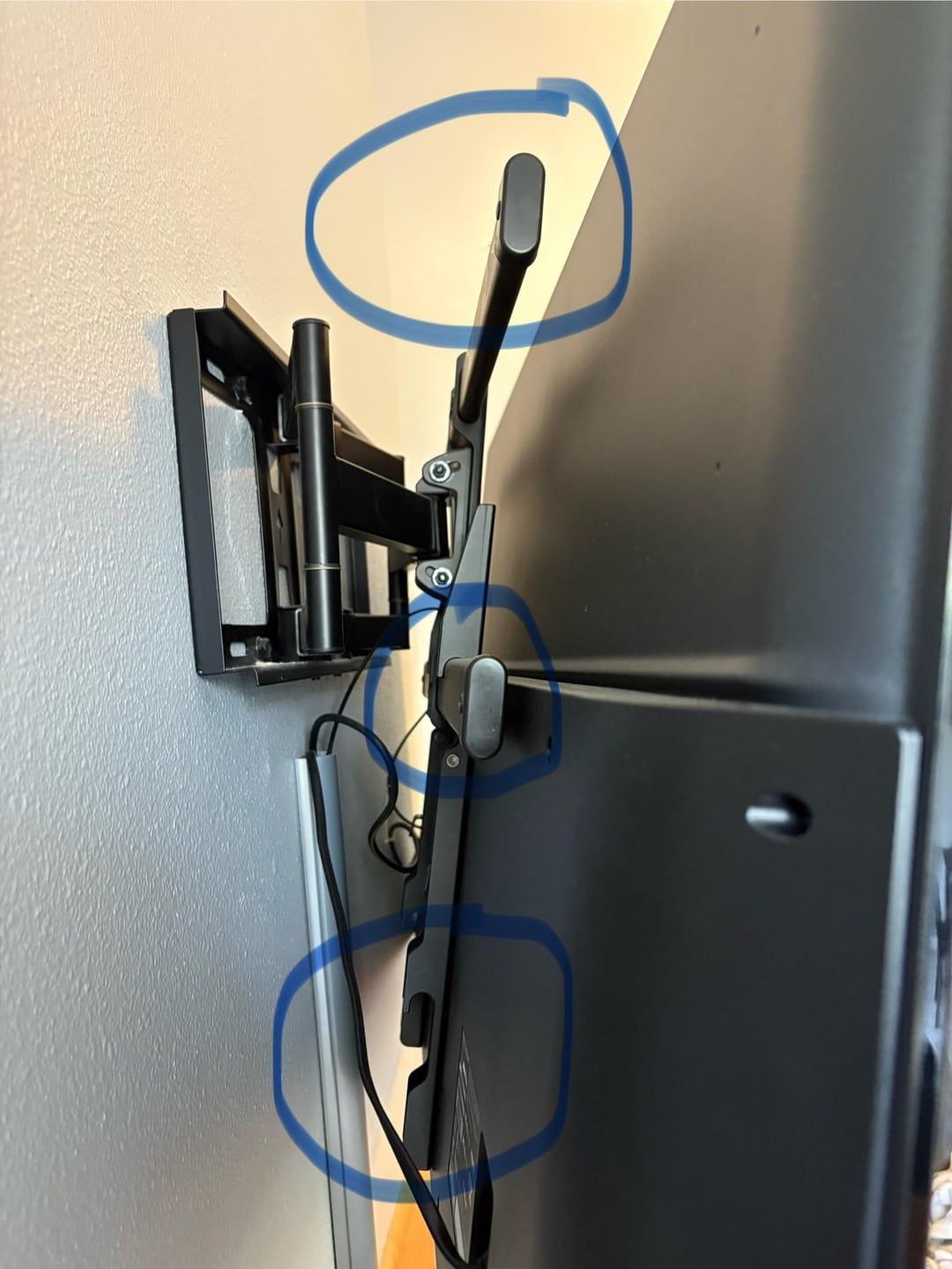 私は自分のテレビが高すぎると思ったので、「下げた」。怠zyな方法。写真の前後を見る。基本的に、私はテレビを下に移動して下部のマウントバーに掛けたので、底がマウントバーに休んでいないのがわかります。これは危険ですか?より安全な人やredditの人は、実際により良く見えると思うので、戻るべきですか?