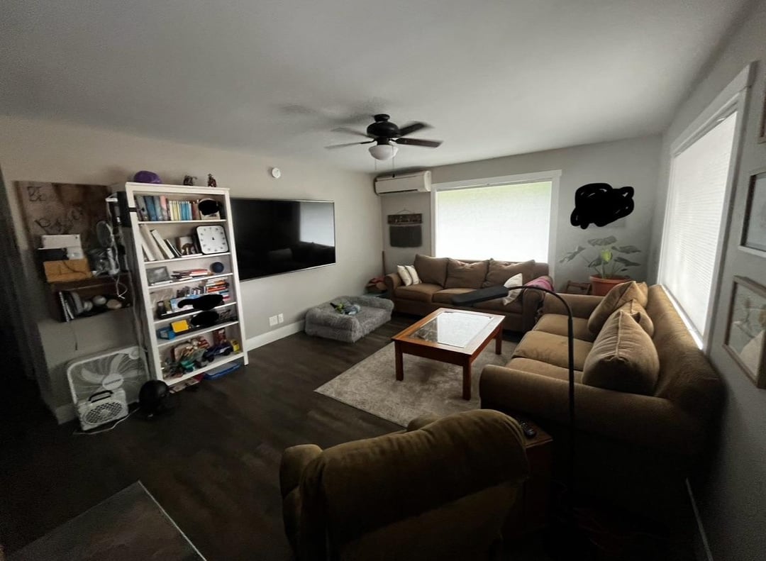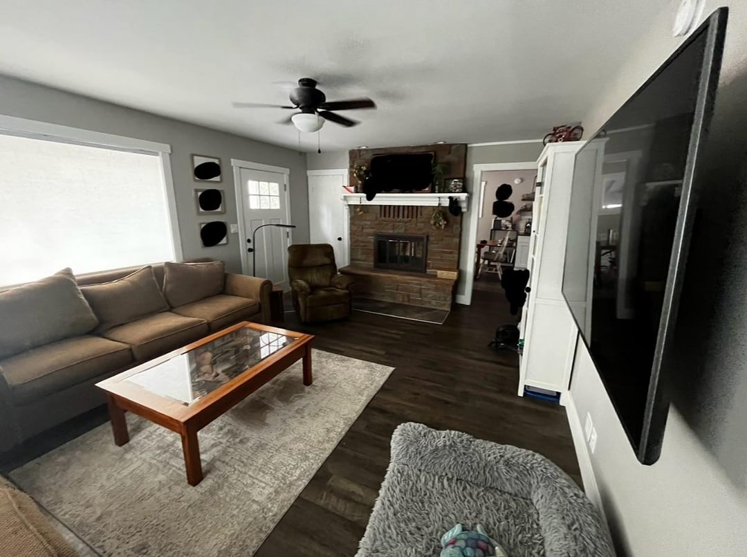 私たちは、リビングルームに新しい家具を手に入れることを検討しています。私たちはこの部屋からテレビを動かして、それを焦点ではないようにしています。窓と暖炉の景色にもっと焦点を当てたものが欲しいです。私たちは、窓からテレビの壁に1本のソファをひっくり返すだけで議論していますが、それはただ開いている/空になるように感じさせるようです。どんな考えにも本当に感謝します!