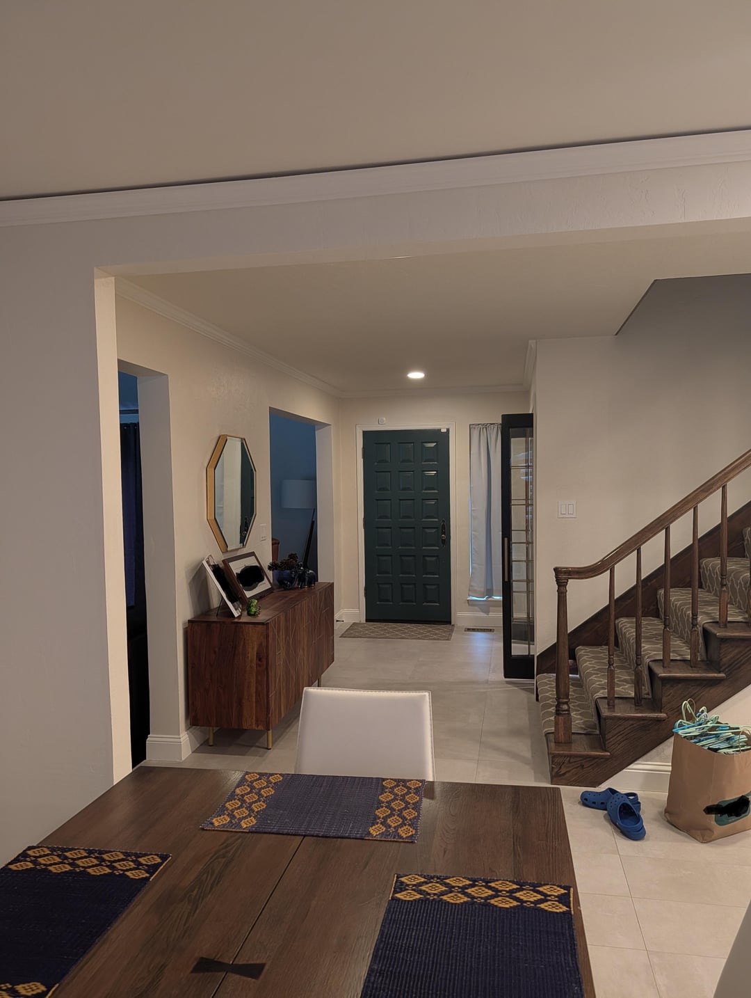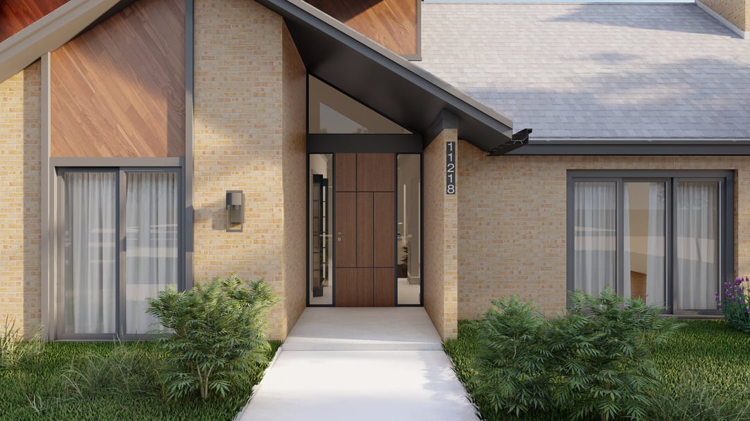 こんにちは、私はデザイナーと仕事をしていて、彼らは彼と私が私の玄関をやり直すために私の入り口をやり直す方法について議論してきたもののいくつかのモックアップを共有しました(また、内側に大聖堂の天井を追加)。最初の写真は、今日の写真です。次はデザインの変更です(注:ドアを変えなければなりません。なぜなら、それはもはや機能的でバラバラにならないので、彼がそれを示しているにもかかわらず…屋根の構造が大幅に修正せずにそれをブロックするので、外部の入り口のモックアップのドアの上にその三角形の窓を置くことはできません)。メモとして、大聖堂の天井は、2階に走るので、内部の写真の階段を通り過ぎることはできません。どんなアドバイスや提案は非常に役立ちます!