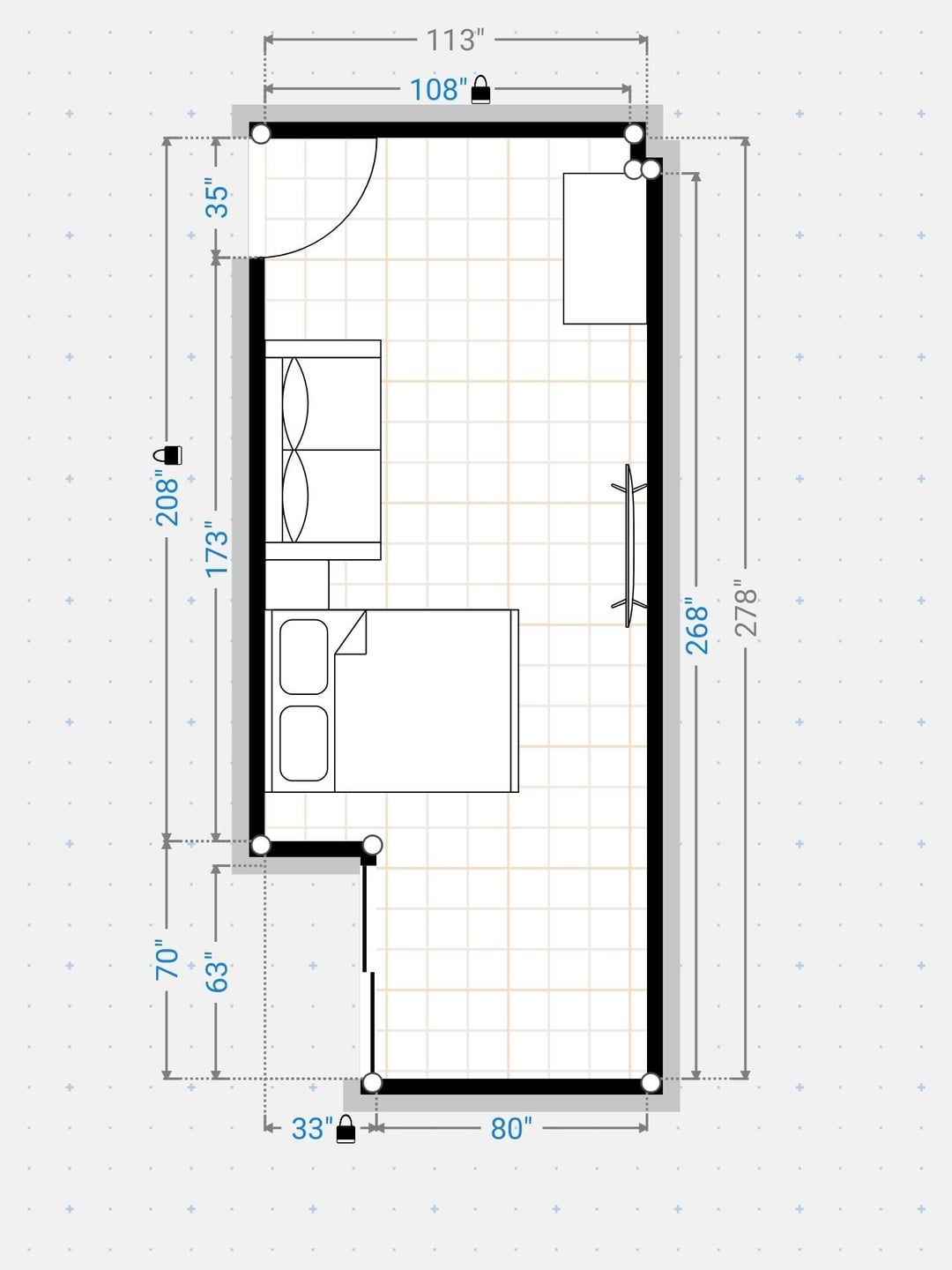 私のベッドからテレビを見ることができる部屋をデザインしようとしているだけでなく、友人が1人か2人いる場合に人々にそれを見せてもらうことができます。また、PCゲームをプレイしたい場合は、コンピューターの近くにコンピューターをテレビに表示できるようにしたいと思います。白い長方形は、私が机を置く場所を表し、これまで購入していないので正確ではありません。テレビは55です" 私が場所を見つけようとしている画面。どんな助けも素晴らしいでしょう。