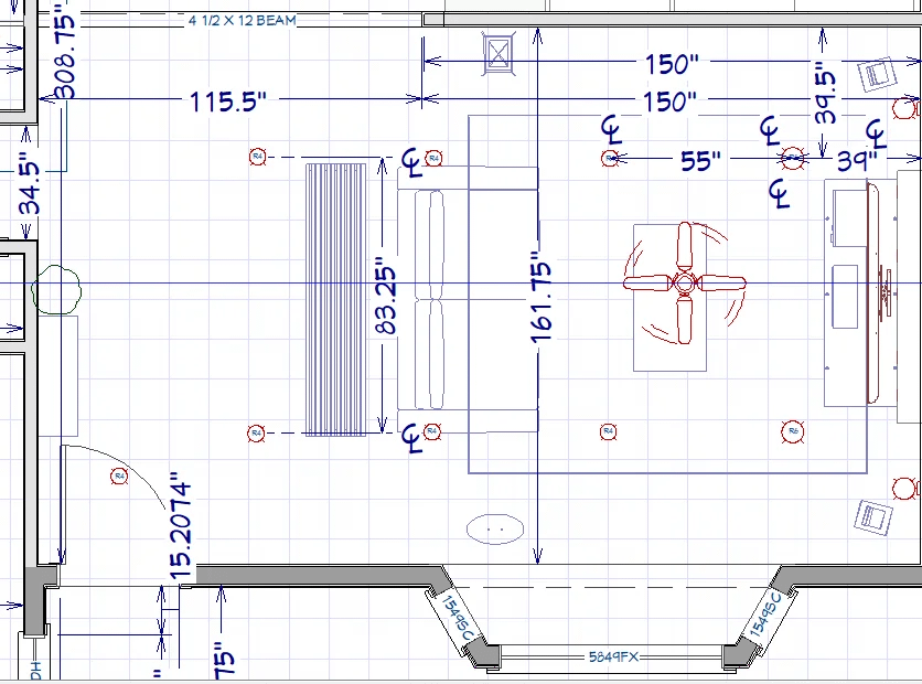みなさん、このリビングルームエリアに何をお勧めするか尋ねたかったのです。左下のドアはメインの入り口のドアであり、座っているセクションが下がったベイウィンドウもあります。このウィンドウは西に面しています。東側にはキッチンがあります("その上" 壁の向こうにはリビングルーム)、そしてスライド式のパティオのドアがあります(ここには見えませんが、メインドアに入るときにそれを見ることができます)。