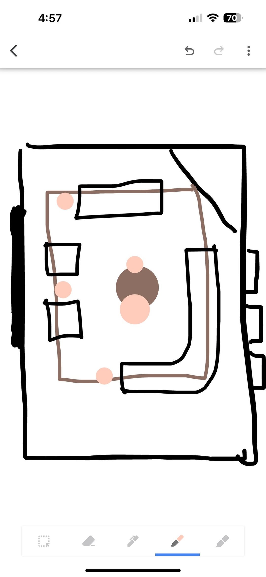 最後の写真は、家の入り口からの眺めです。このコーナーの暖炉の部屋に家具を配置して、部屋に通じるアーチ型の入り口がソファで視覚的にブロックされないようにするにはどうすればよいですか?窓の前に湾曲した断面がある私のスケッチは、それが機能するように見えますか?