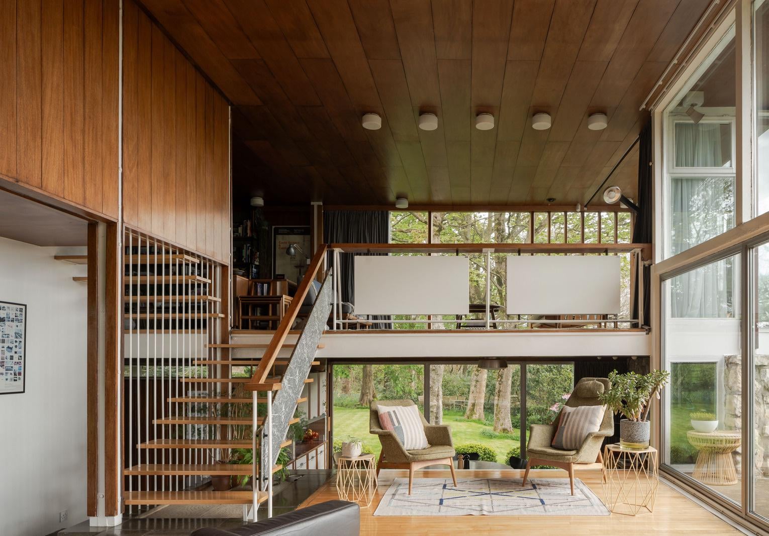 1954年にイギリスの建築家ピーター・ウォマーズリー(1923 – 1993)が設計した中世の近代的な住居、イギリス、ウェストヨークシャーのファーンリー・ティアス [1530×1067]