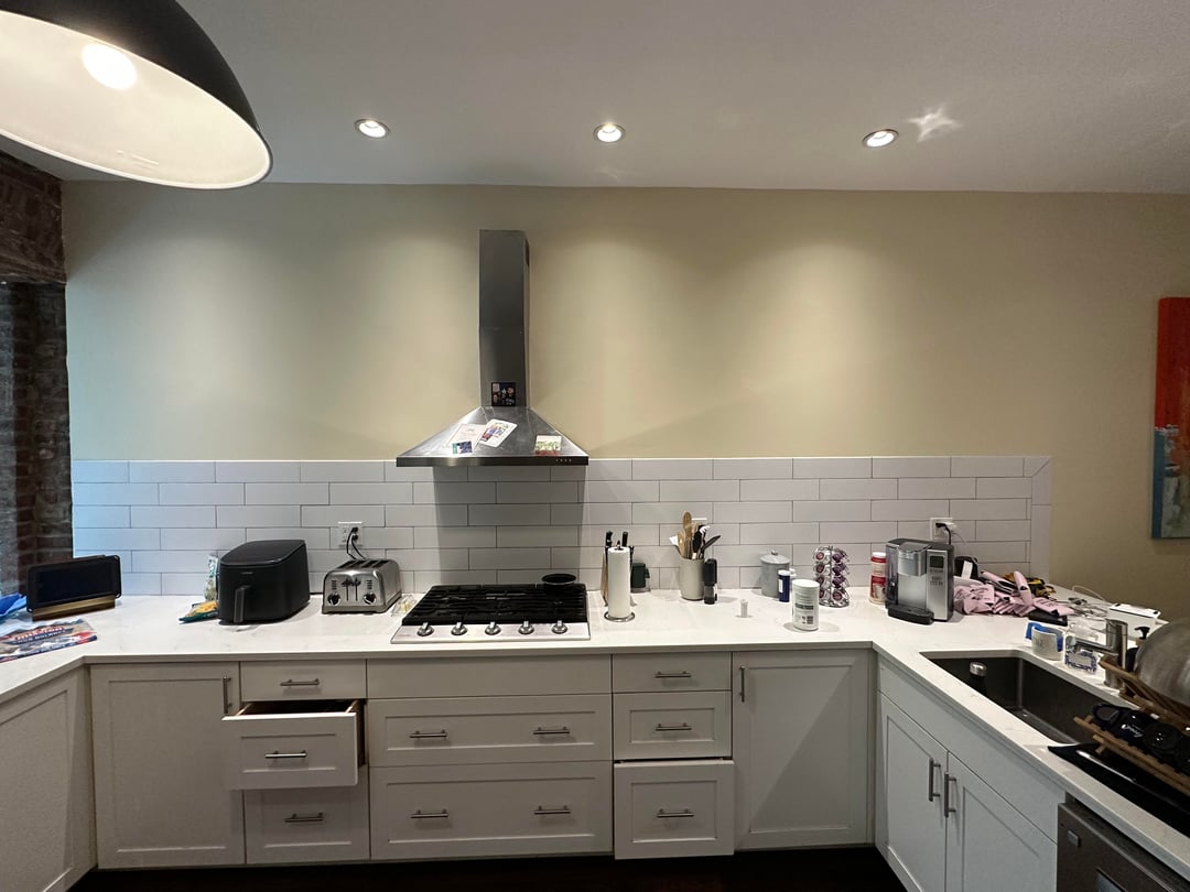 皆さんはどう思いますか?棚エリアのバックスプラッシュを取り外す必要がありますか?棚がキャビネットと整列するのではなく、バックスプラッシュの現在の上端の上に始まった場合、それは愚かに見えるでしょうか?