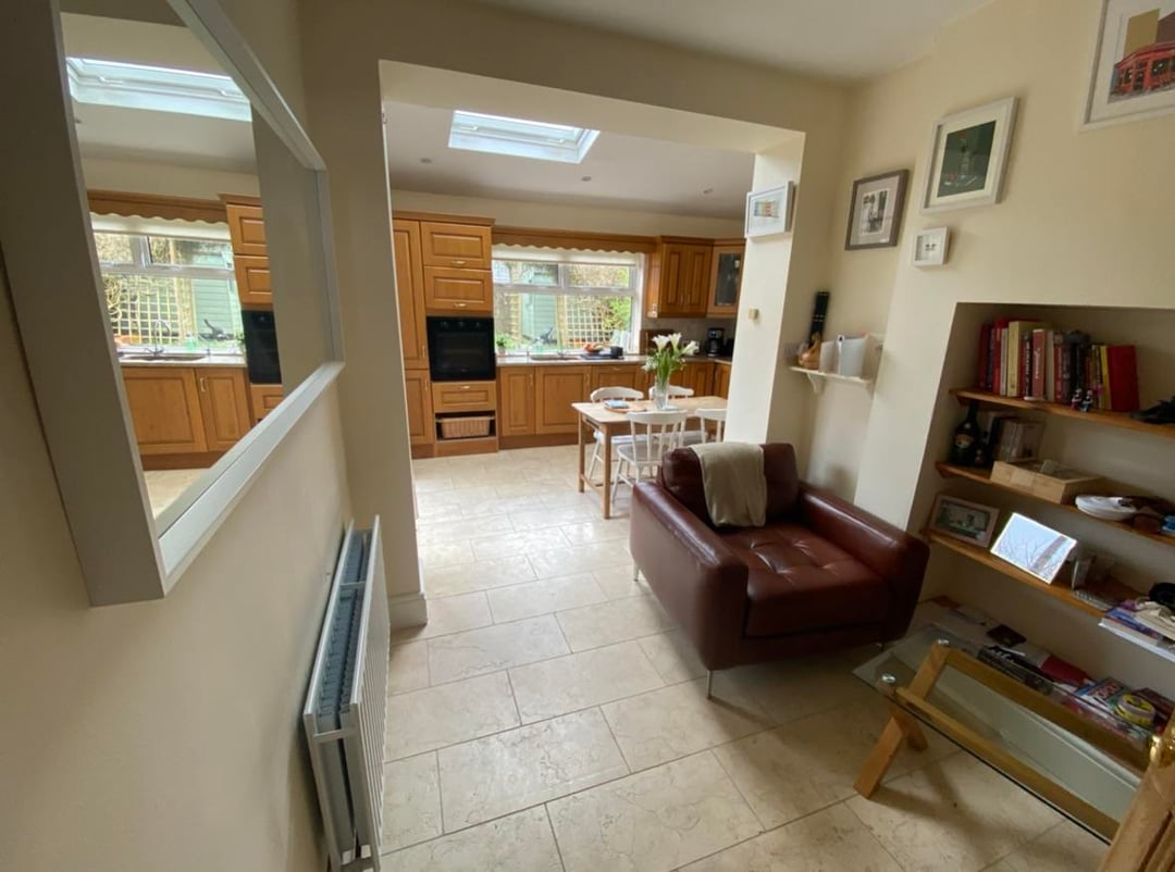 私たちは、私たちが料理をしたりたむろしたりすることができる社交エリアであることを望んでいますが、部屋の角度のためにそれを見つけます – 人は床の間で座っている人から完全に遮断されています。
