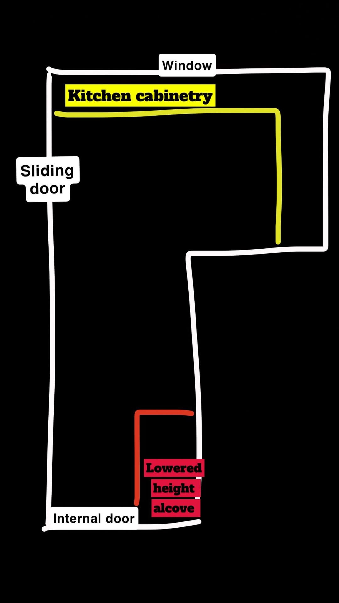 L字型のキッチンスペースがあり、わずかに厄介なので、その可能性を最大化する方法が本当にわかりません。