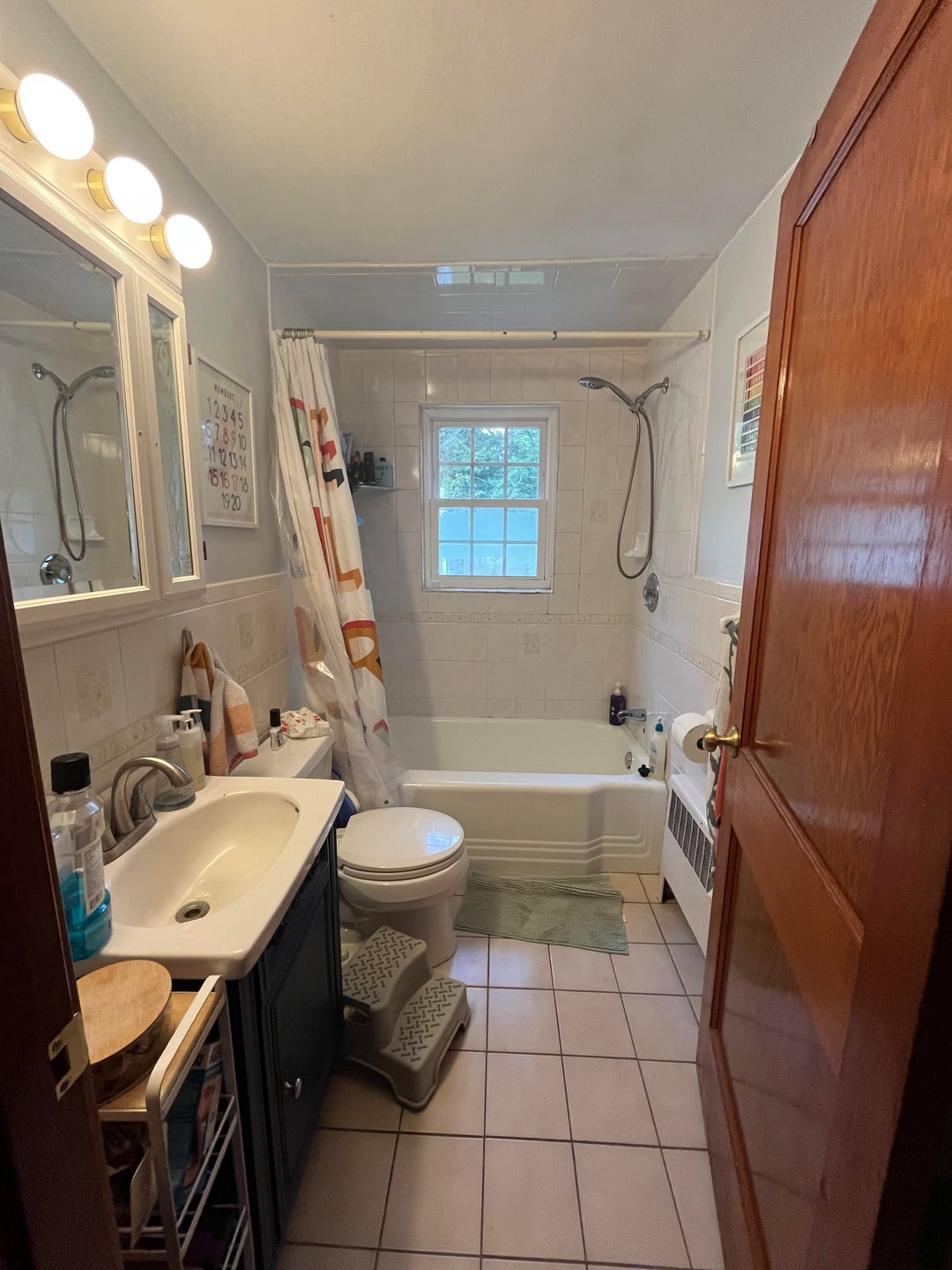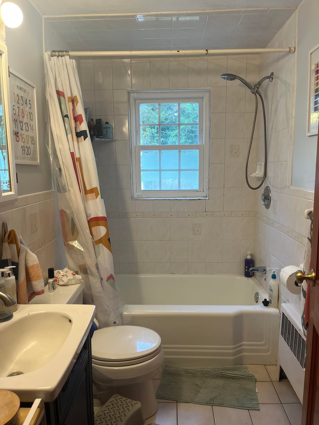 NEには1950年代に大量生産された古典的なケープの1つがあり、階下の唯一のバスは90年代以来触れていません。賢明なデザイン私は、床にパターン磁器タイルと大きな壁のタイルが再び欲しいと思います。壁が幼い子供から保護されているように、タイルポニーの壁を維持したいと思います。プライバシーがあるので、ウィンドウを小さくしたいと思っています。私はそれが簡単に掃除し、明るく、モダンすぎないようにしたいです。ベースボードヒーターを使用するのではなく、加熱された床に散布することを検討しています。最も挑戦的なことは、シンクのスペースが、ドアのそばに壁から始まる場合、深さでわずか15.5に制限されていることです。小さなゴミ箱のためにスペースを残しながらストレージを最大化するのは素晴らしいことです。ありがとう!