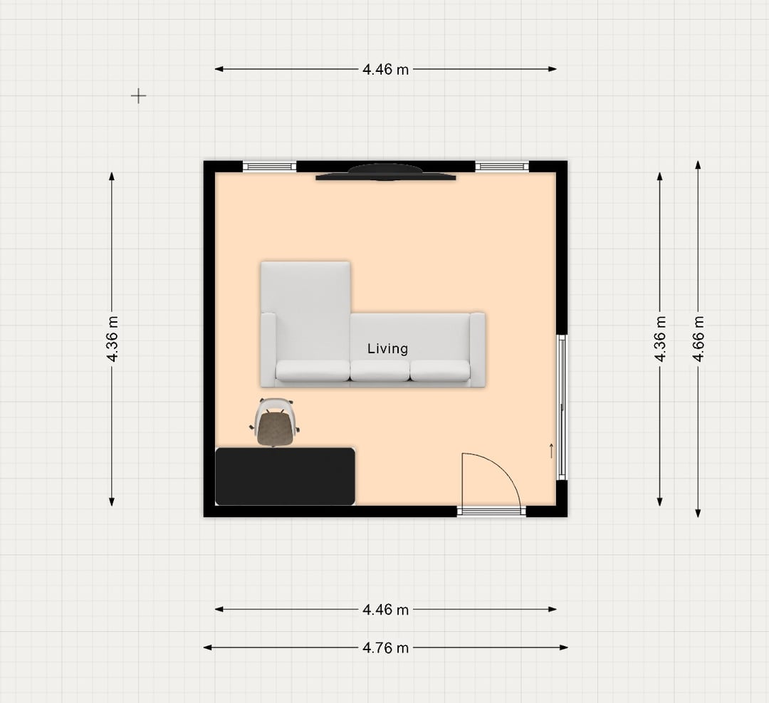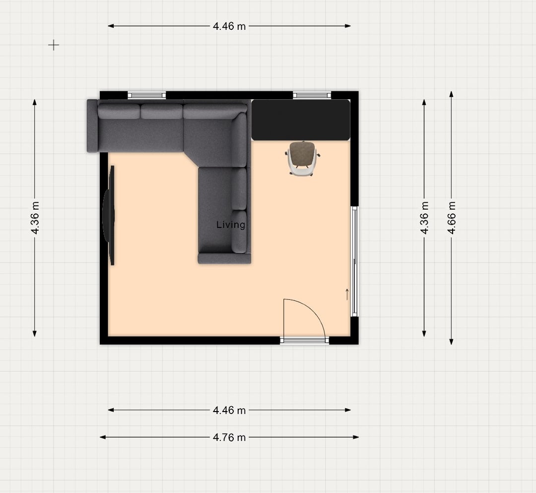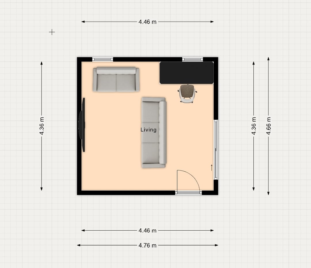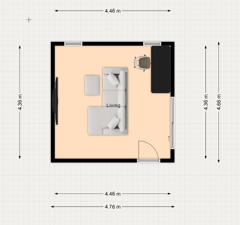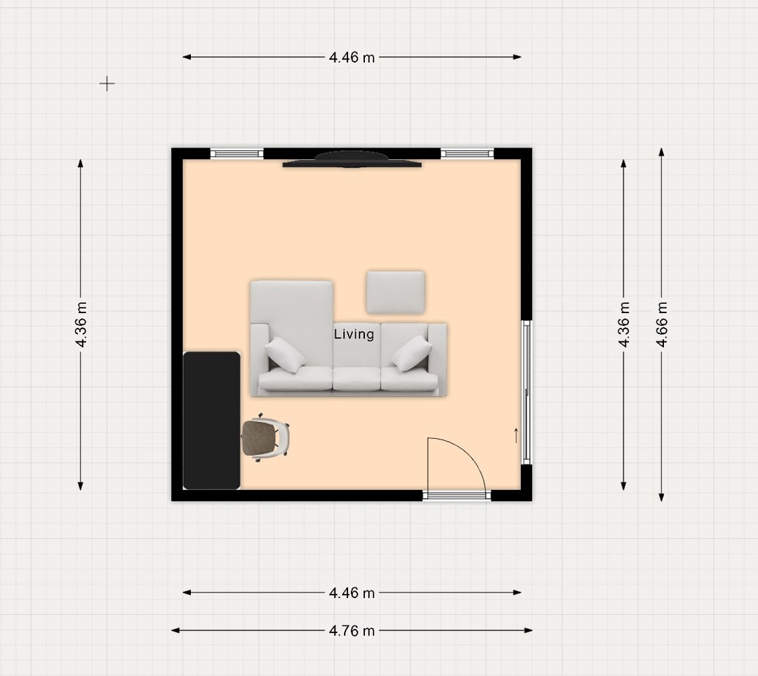 - この部屋のレイアウトでうまく流れるデスクとソファの配置