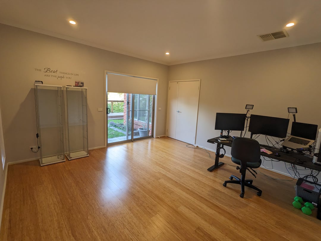 この部屋は、主にホームオフィスとして使用され、ソファでゲームをします。ゲームPCをテレビに接続する予定です。また、家族や友人と一緒に映画をゲームして見たいと思っています。また、窓とガラスのスライドドアで、ブロックアウトと象徴的なブラインドとカーテンを取得する予定です。テレビは77になる可能性があります" または83" (近い視聴距離がまだゲームに問題ない場合)