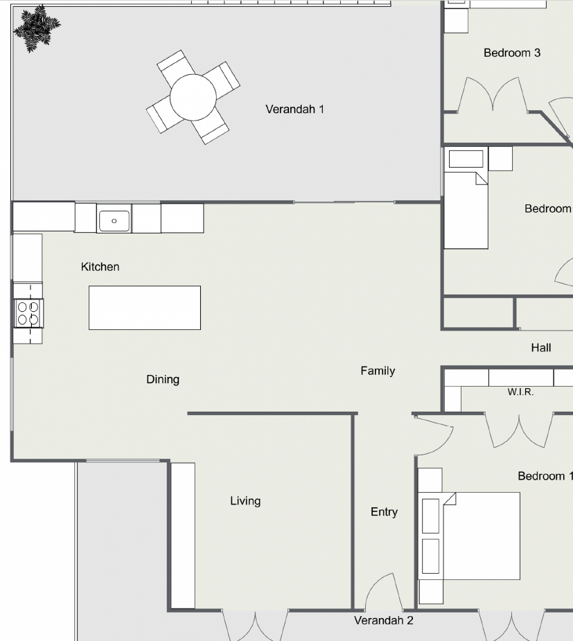 - このスペースに重ねドアまたは引き戸/窓を追加することは、エリアをより多くの光とつながりのあるエンターテイメントに開放する最も効果的な方法でしょうか?ドアの入り口をキッチンの隣の左側に移動すると問題が発生しますか?明らかに欠けているものはありますか?