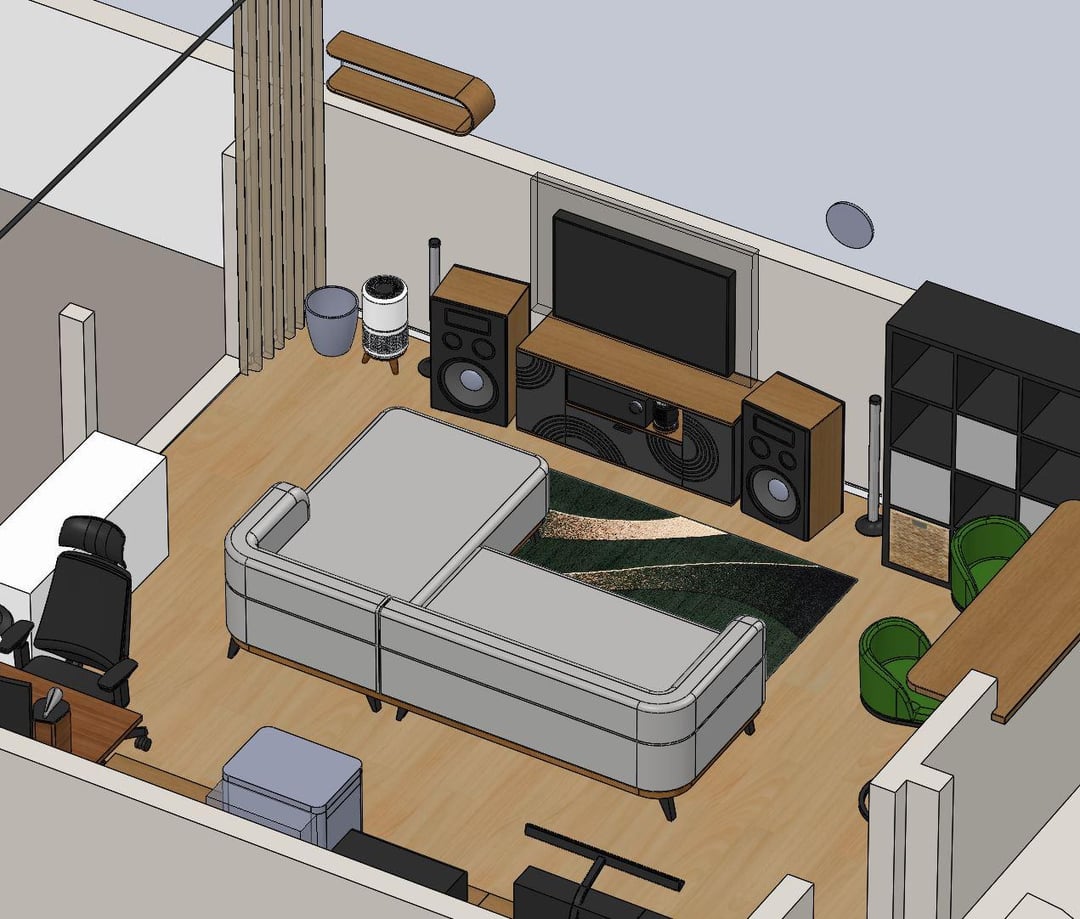 現在、ソファを何点か迷っています。 1枚目と2枚目の写真のソファーはこのスペースには大きすぎるかな?代替オプションを写真 3 に示します。 大きなソファの場合、すべての側面におよそ 60 cm (2 フィート) のスペースが必要です (オフィスチェア、バースツール、左側のラジエーターに向かって、正面のローボードに向かって)。上から見ると、それほど悪くはないと思いますが、最初の写真ではよくわかりません。通常、背もたれ用の大きな枕もありますが、まだモデル化していません。
