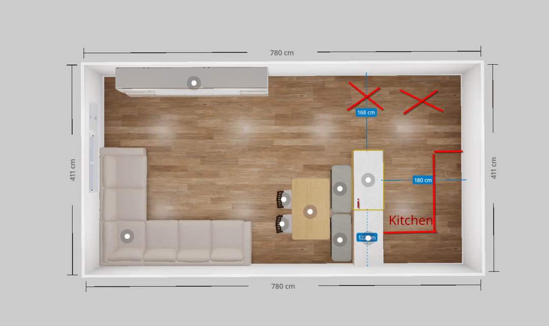 我が家のキッチンはもともと 240×180cmしかし、それだけでは十分なスペースではないことに気づきました。そこで私たちはこうすることにしました リビングルームに拡張してください を追加することで キッチンペニンシュラ。