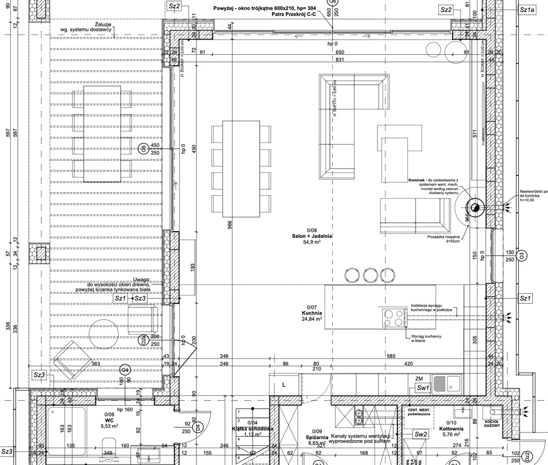 - 下向きの通気口とIHストーブがうまくいくとは思えませんが、高い天井に適切な通気口があるのは本当に奇妙に見えます。特にインテリアデザインの方向性はモダンなオーガニック/地中海風です。