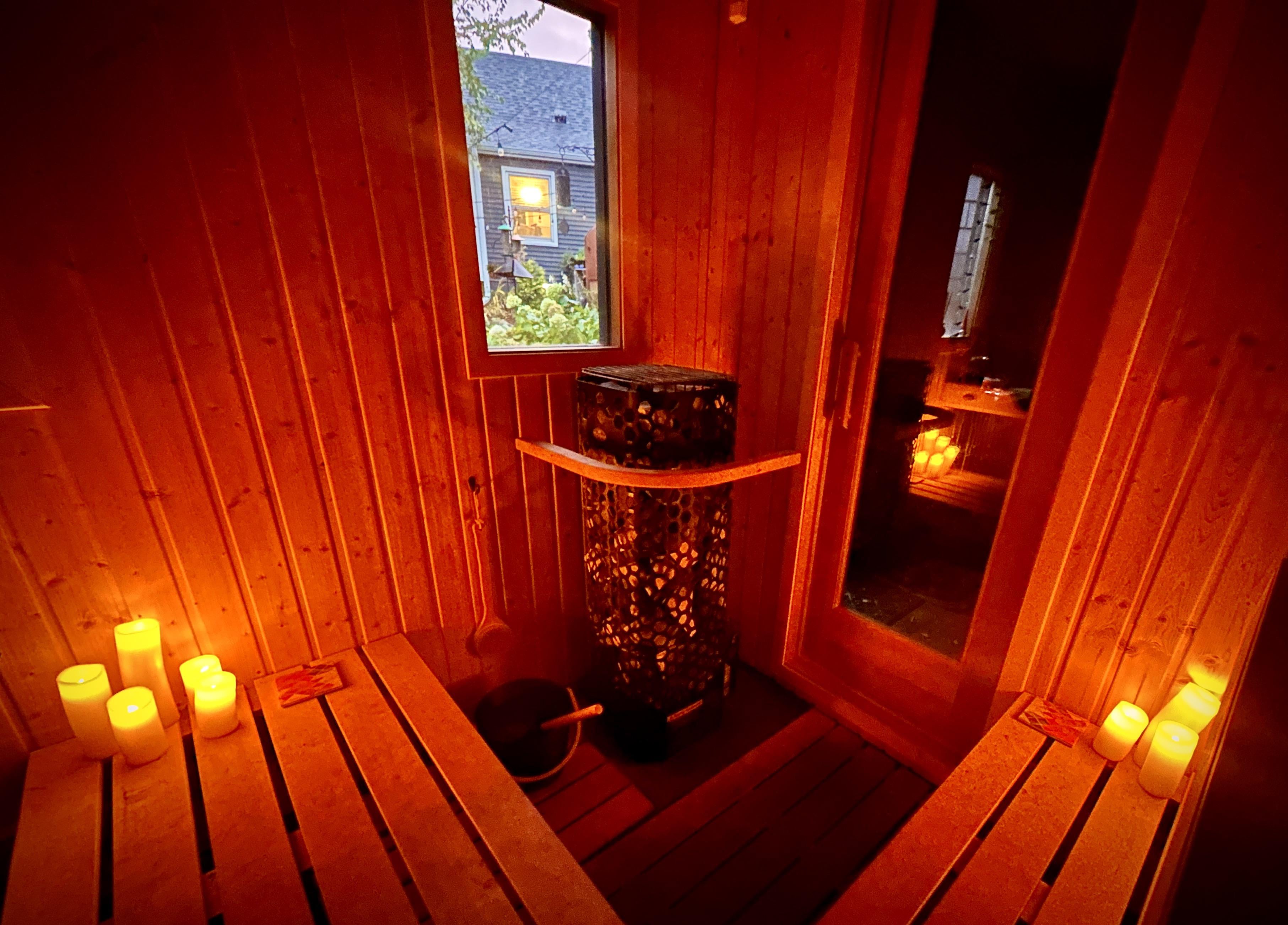 雨の中の裏庭のサウナ