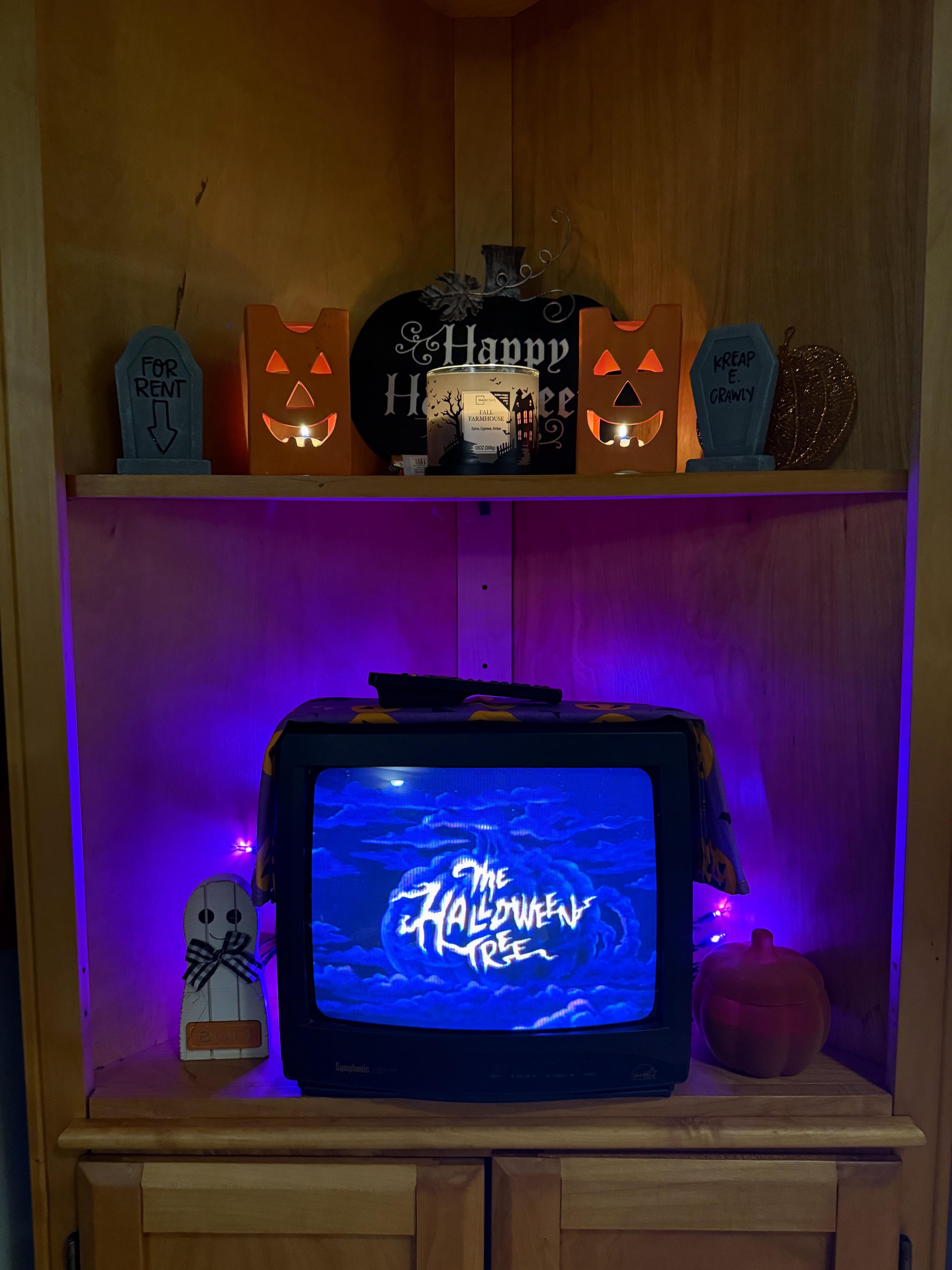 ホリデーシーズンに向けた小さなレトロなテレビのセットアップ