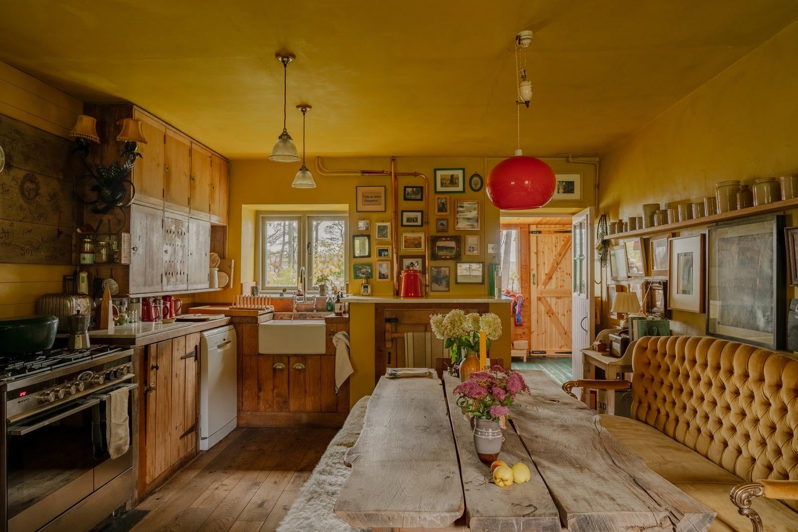 英国ウェールズ、カーン・ガフォールト近くの築何世紀もある農家を利用した、活気のあるカントリーキッチン [1600×1067]