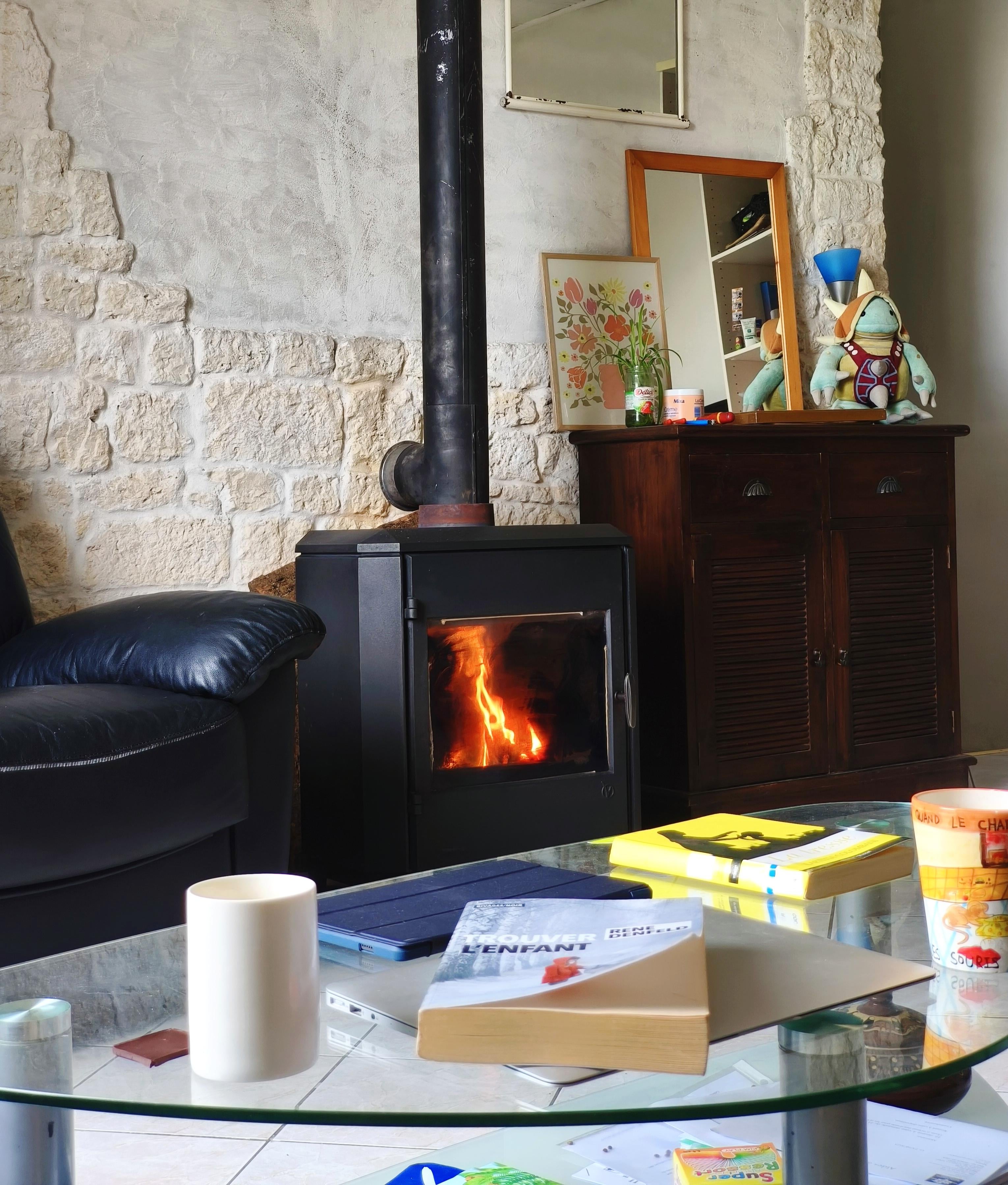 寒くて雨が降っているときは、ストーブの前で本を読むのが好きです