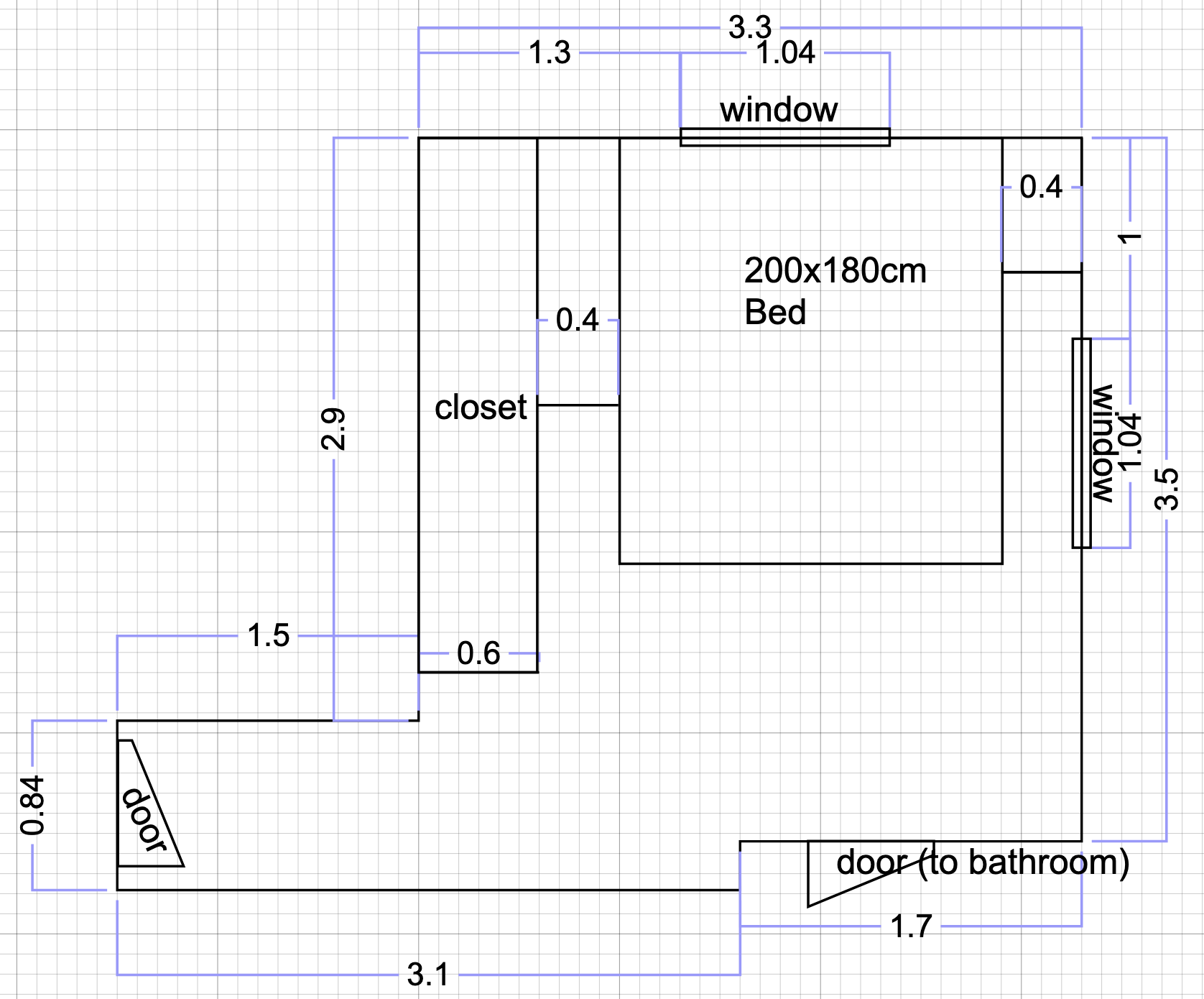 200×180cmのマットレスと奥行き60cmまでの一体型クローゼットのベッドを購入予定です。まだ何も購入または注文していません。レイアウトを見ると非常にタイトに見えますが、本当ですか?何を変更することをお勧めしますか?