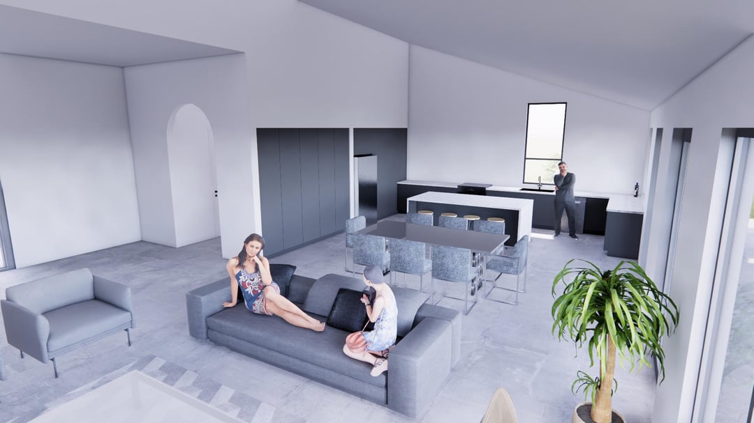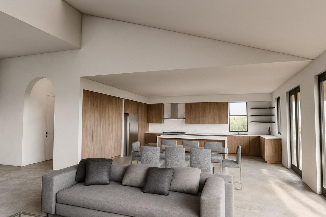 10 フィートの吊り天井にするか、キッチンに物置の金庫室を継続するかのどちらかを決めようとしています。キャビネット、家電製品、開口部の配置は正しいですが、スタイルは迅速なレンダリングのためのデフォルトにすぎません。吊り天井の画像は ChatGPT によって修正され、アーチ型の画像はスケッチアップからのものです。