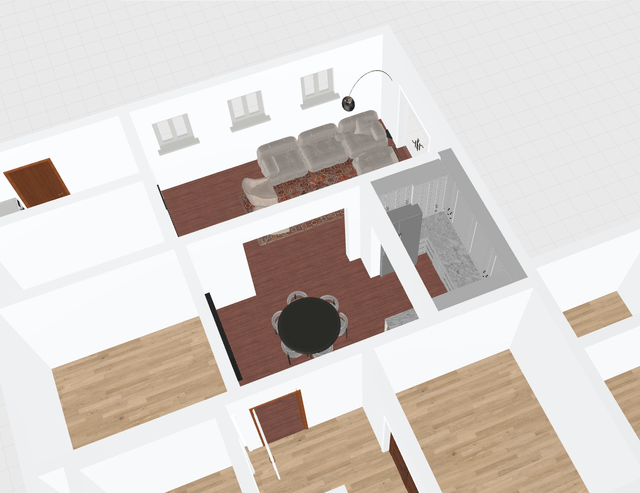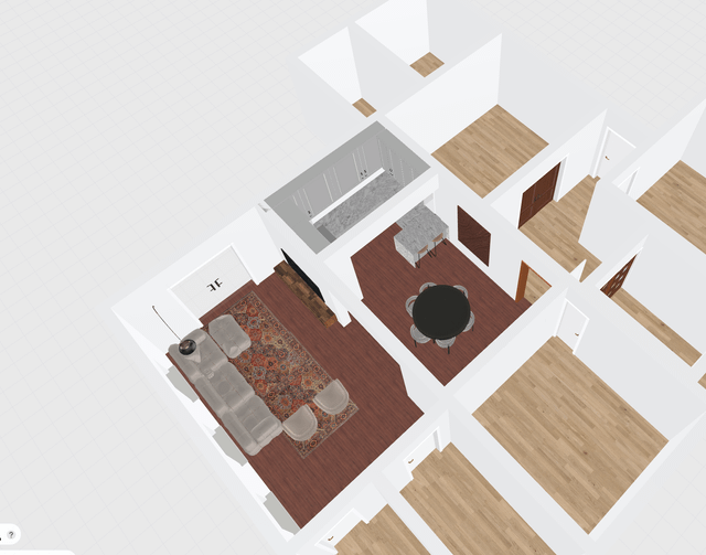 私たちは 1920 年代のカリフォルニアのバンガローの小さな改装を行っています。基本的には、いくつかの壁を開けて、小さなキッチンにキッチンペニンシュラを追加する必要があります。私の現在の懸念は、ダイニングテーブルが移動経路にあるウォークスルーダイニングエリアです。この現在のデザインについてどう思いますか/非常に煩わしいものになるでしょうか?
